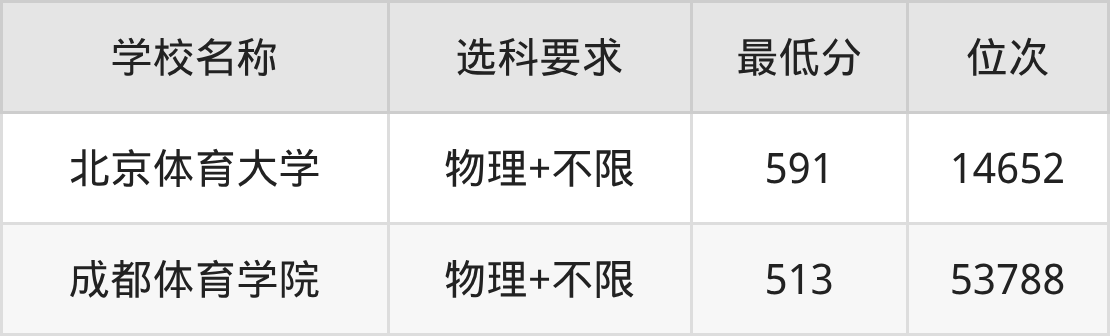 需要注意的是,运动人体科学专业大学中有2所不限选科要求(物理组),如北京体育大学、成都体育学院,因此大家在报考前要提前了解清楚专业选科要求。