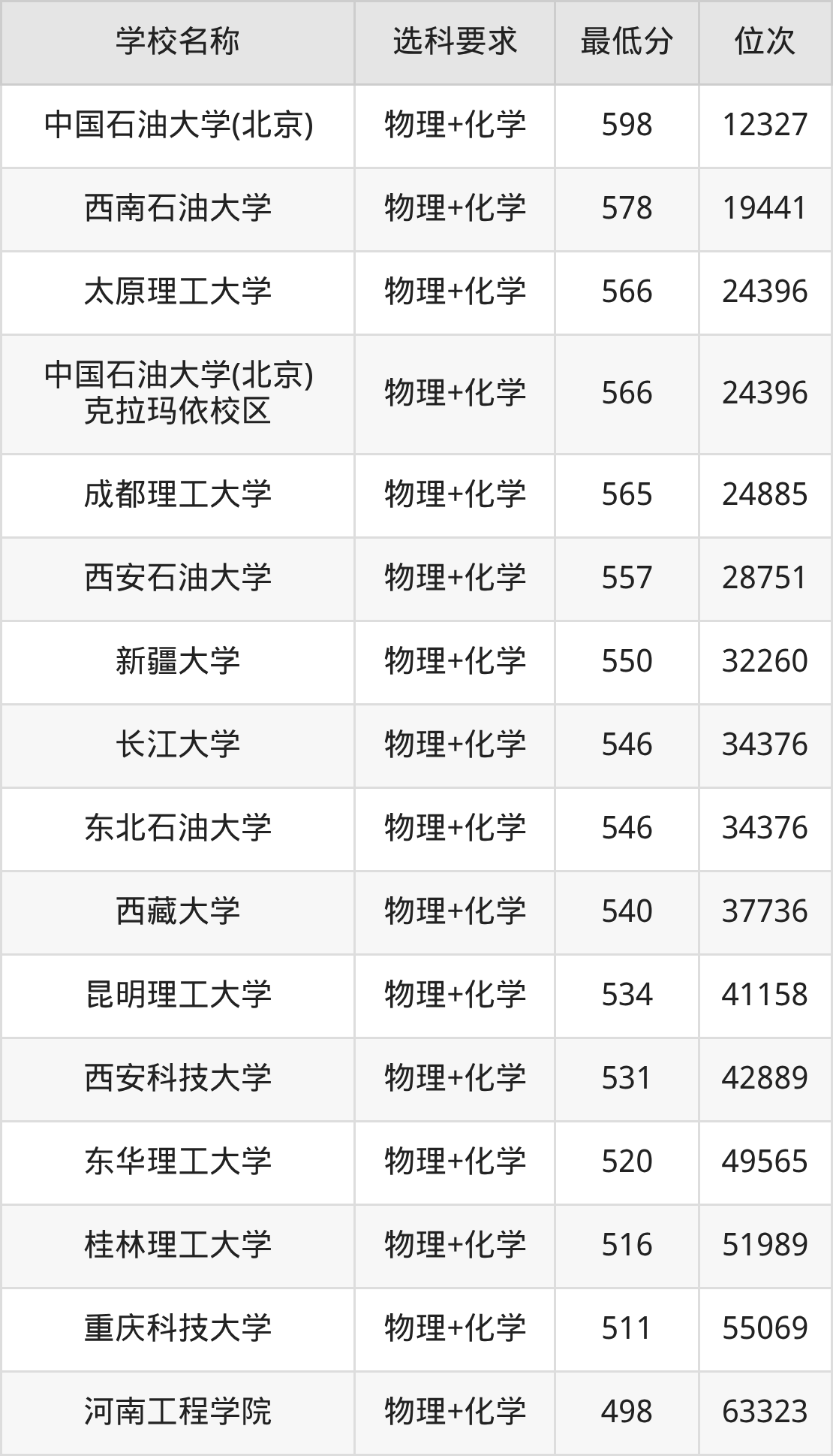 需要注意的是,资源勘查工程专业大学中有18所要求考生必选“物理+化学”,如中国石油大学(北京)、中国石油大学(华东)等,因此大家在报考前要提前了解清楚专业选科要求。