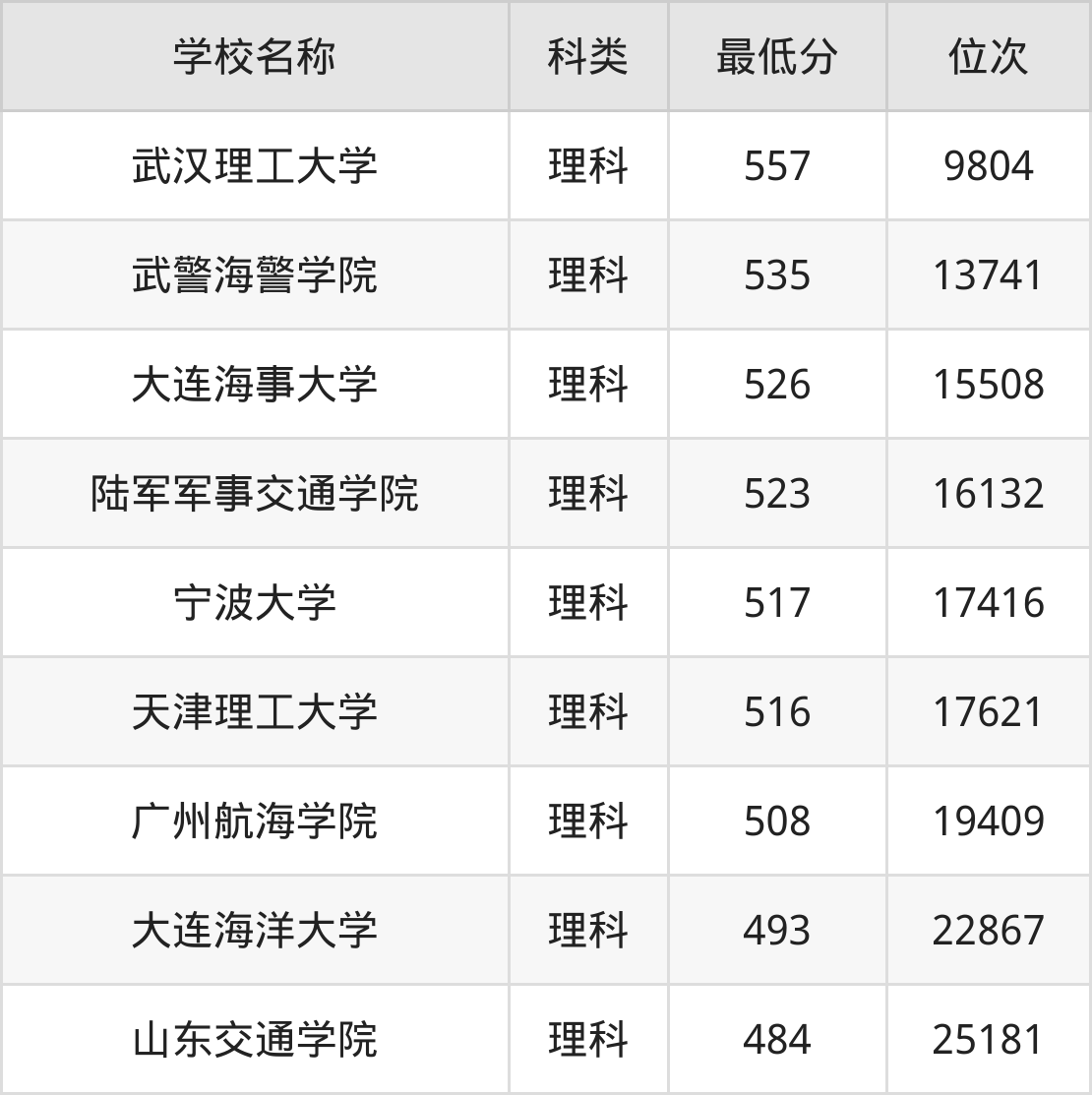 航海技术最好9所大学排名显示,大连海事大学、武汉理工大学、上海海事大学分别位居前三强的位置,更多院校分数线及排名信息可在下文中查阅。