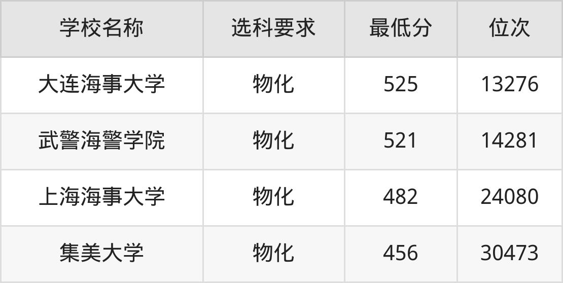 在上海招生的院校中,有4所要求考生必选“物化”,如大连海事大学、武警海警学院等。