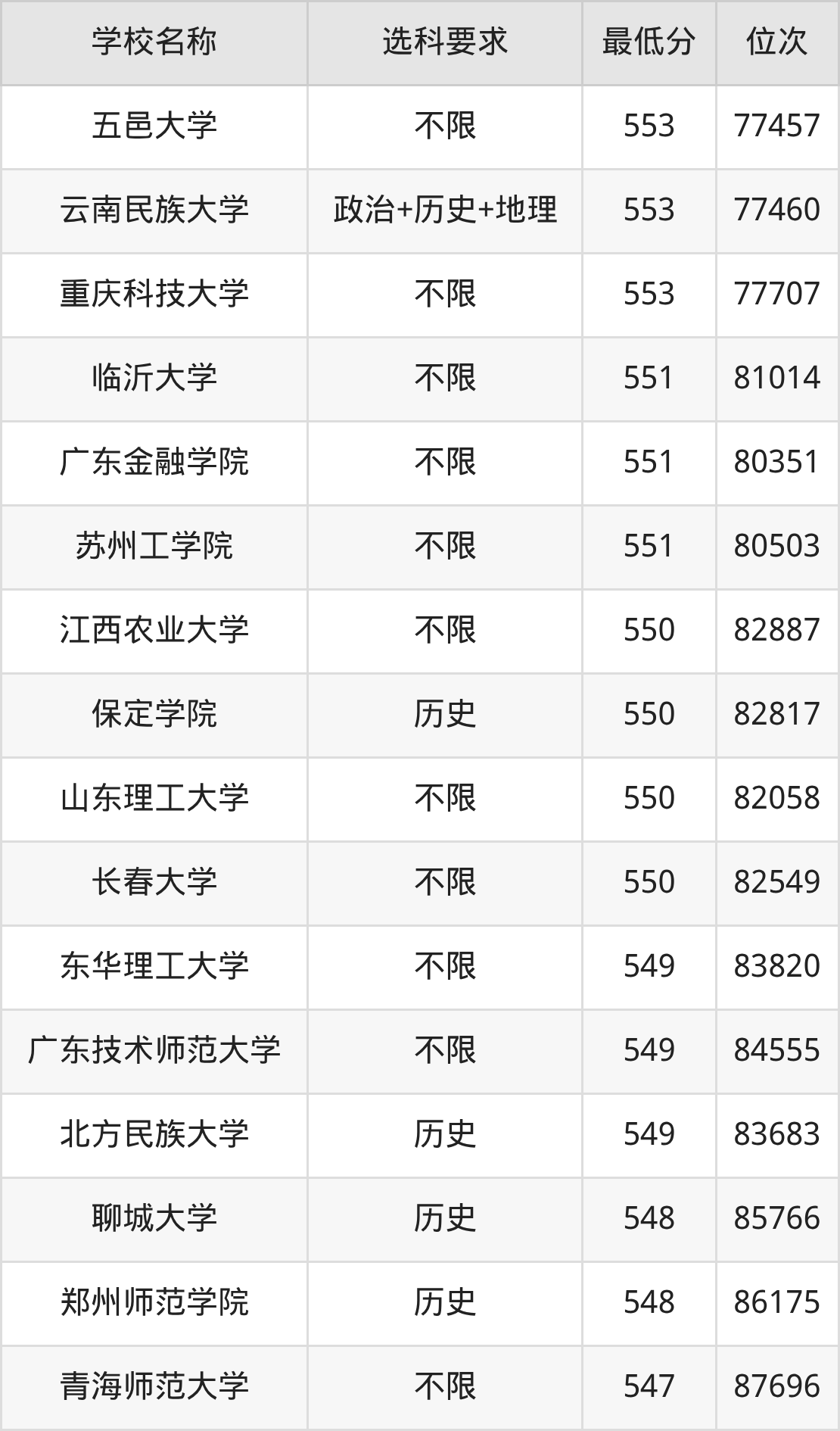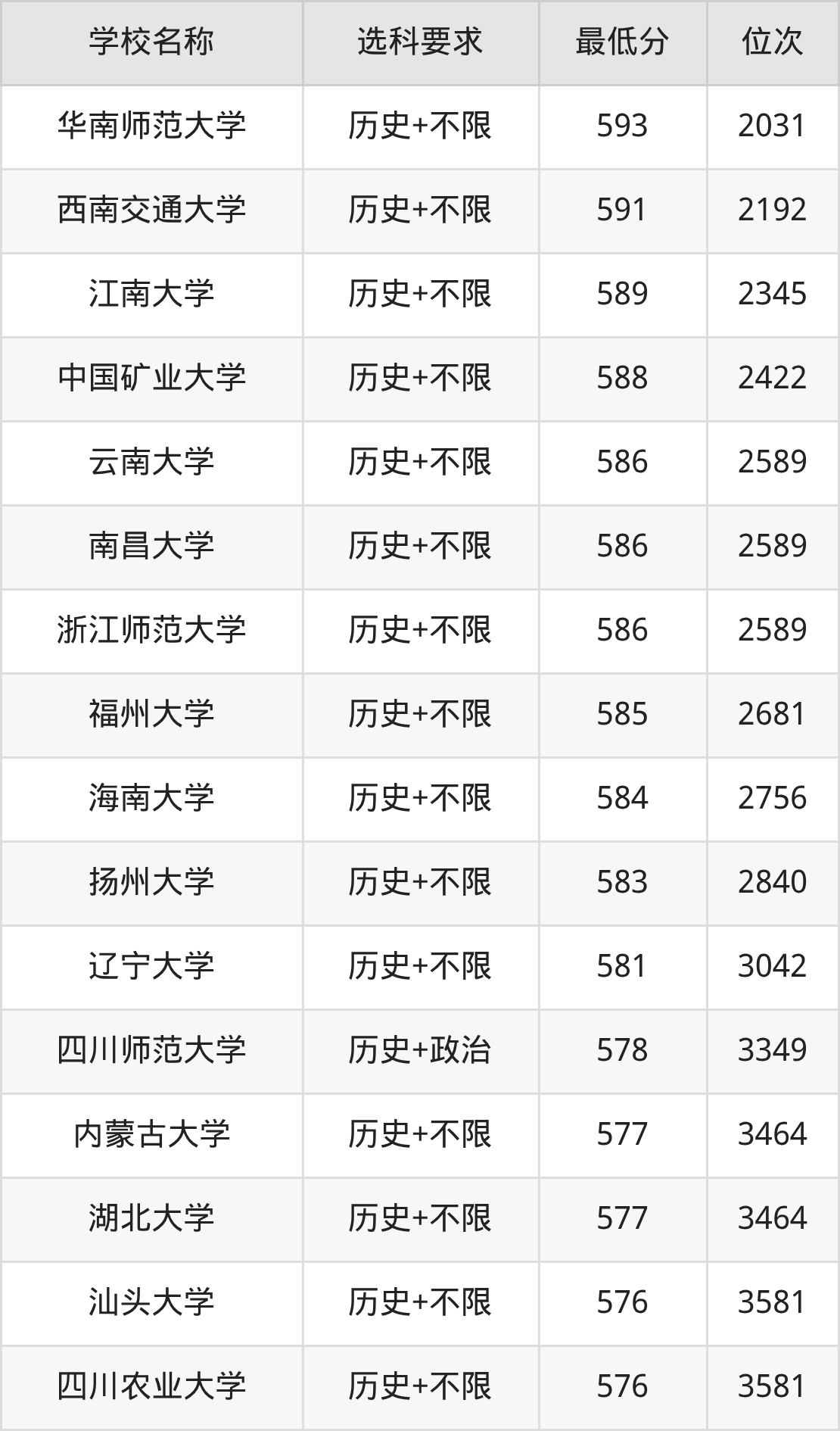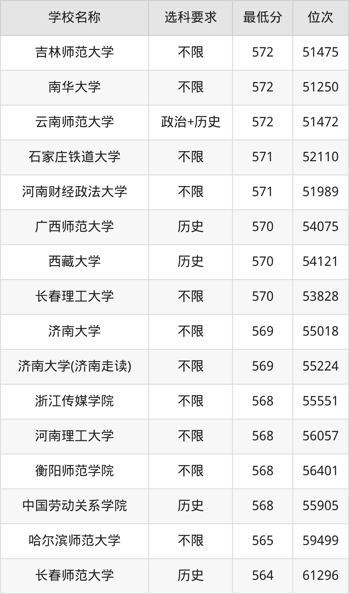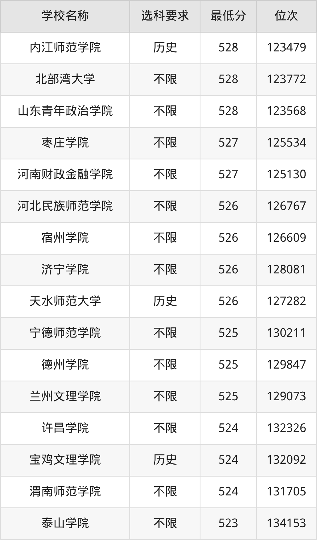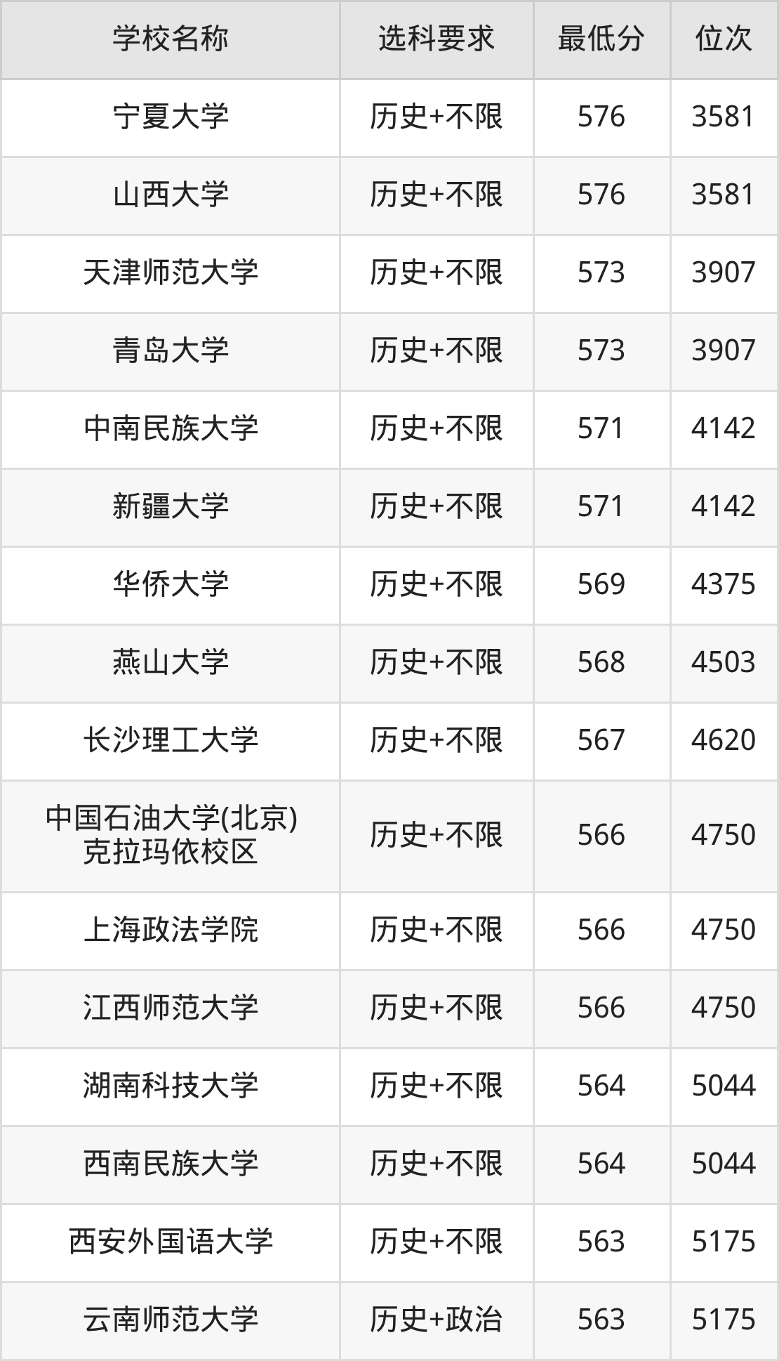 在山东招生的院校中,有235所不限选科要求,如华东师范大学、中山大学等;有60所要求考生必选“历史”,如吉林大学、湖南大学等。