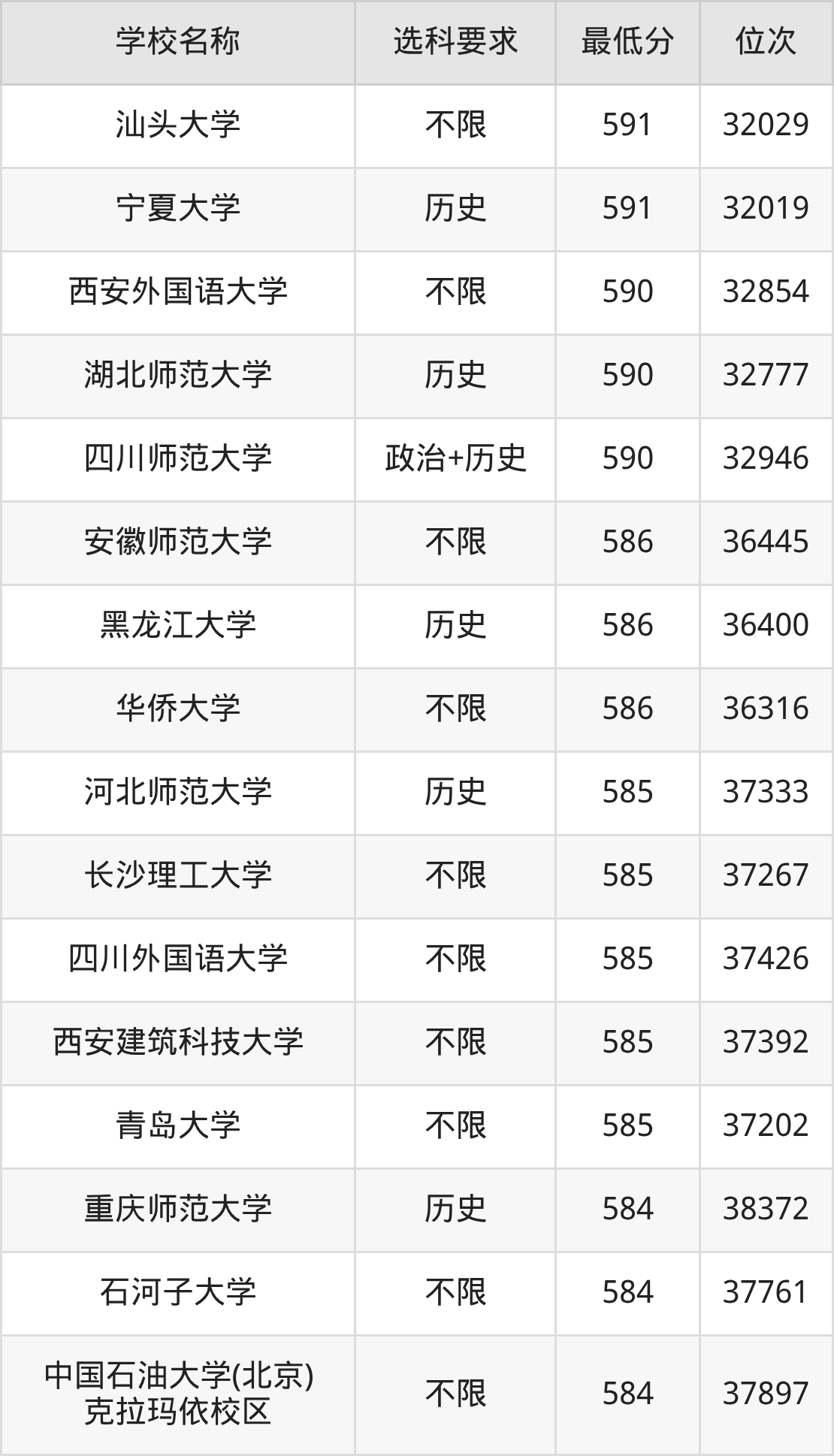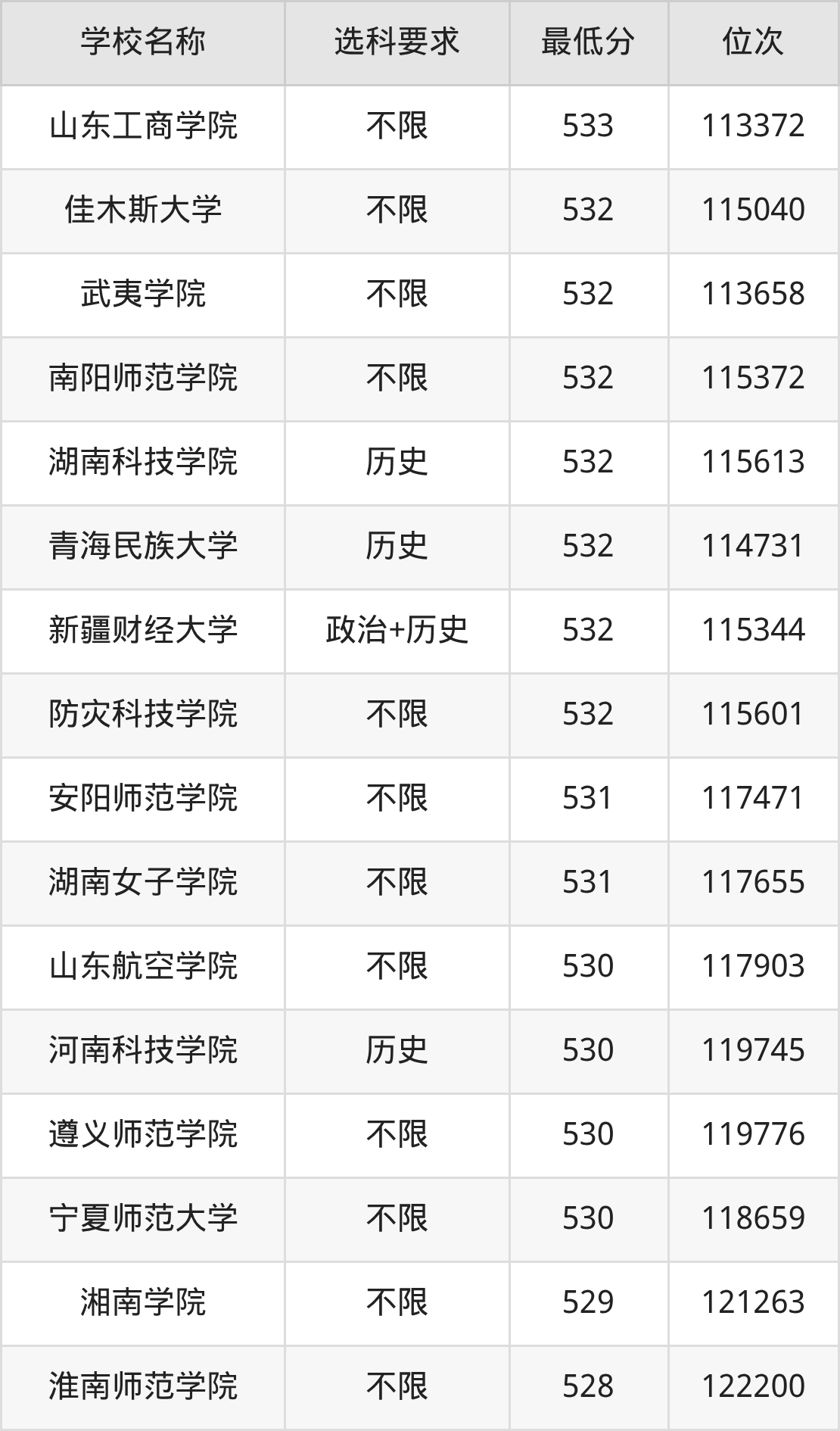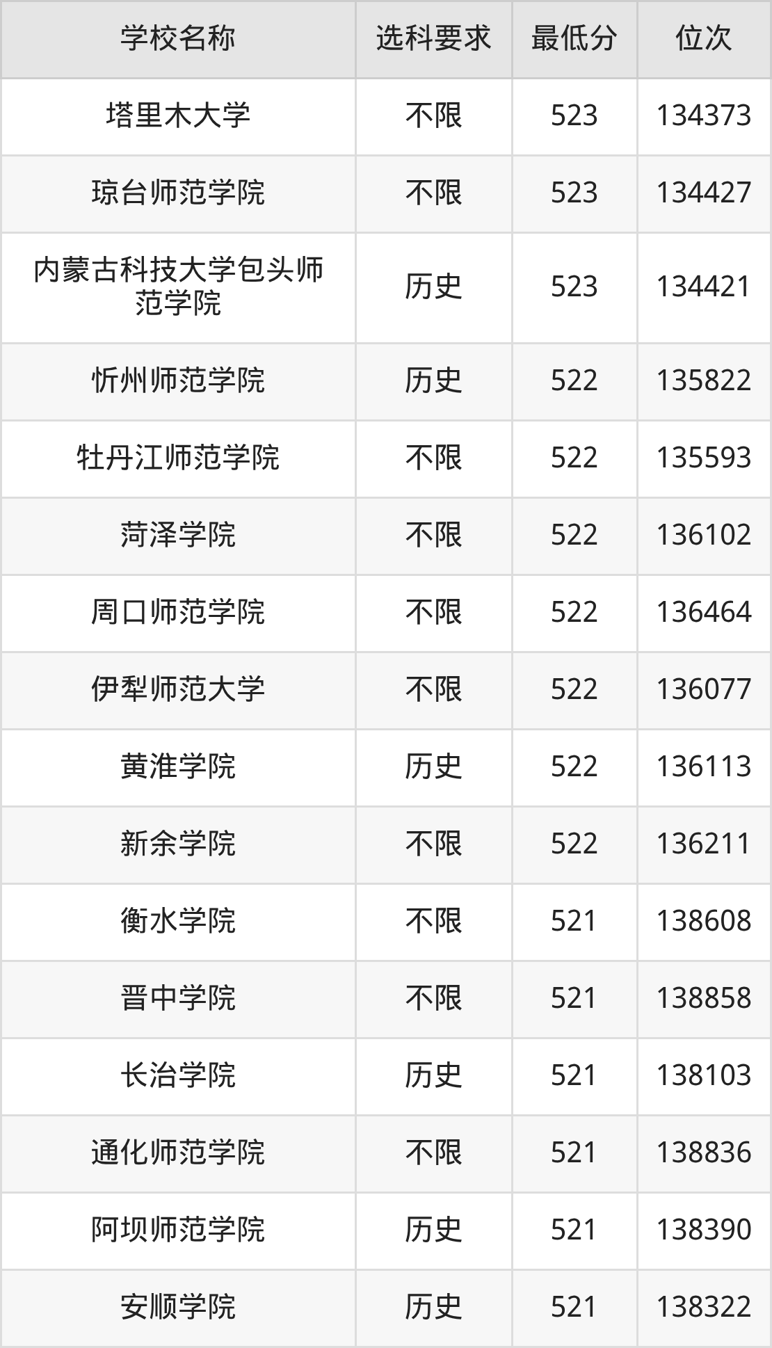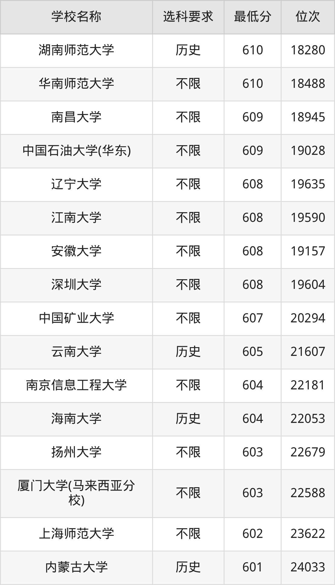 在山东招生的院校中,有235所不限选科要求,如华东师范大学、中山大学等;有60所要求考生必选“历史”,如吉林大学、湖南大学等。
