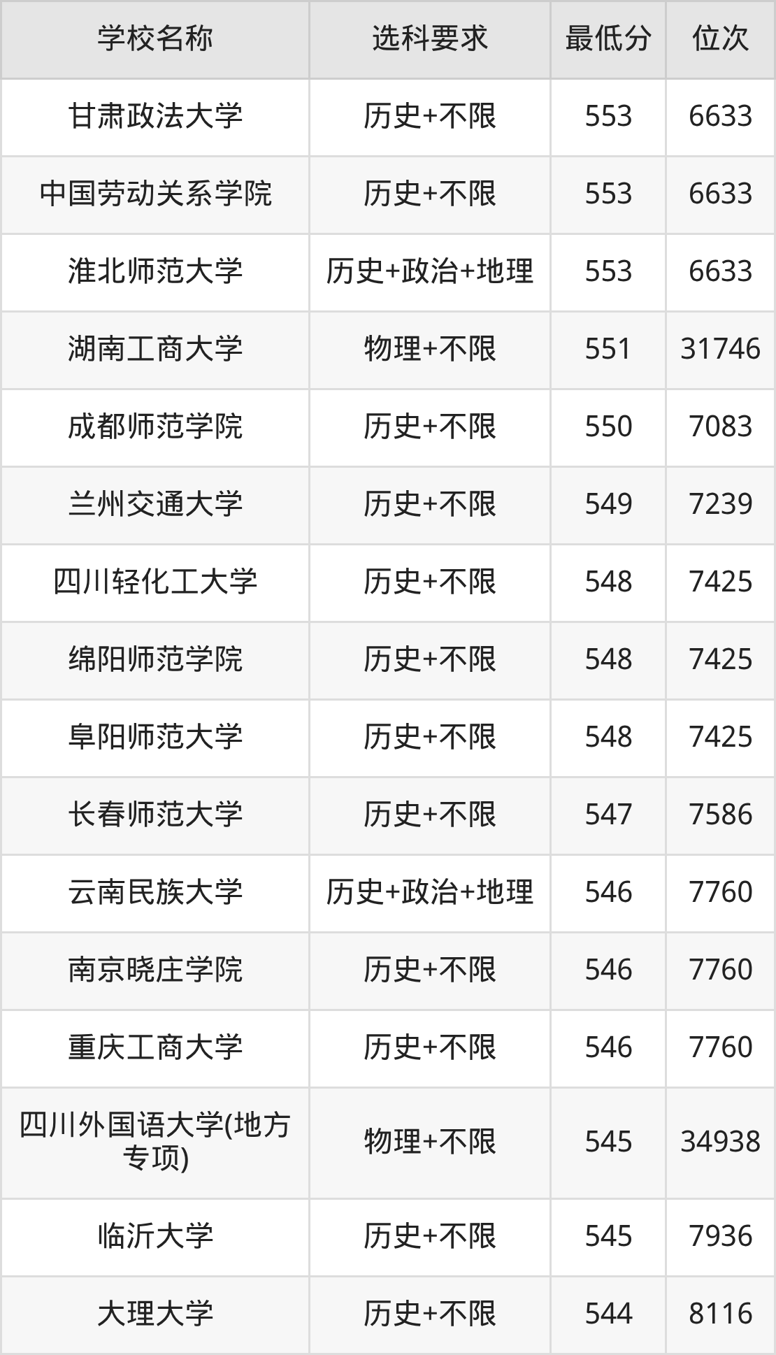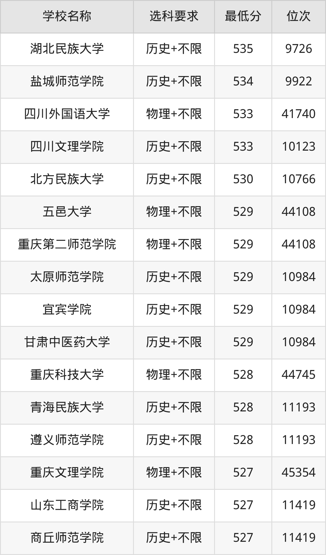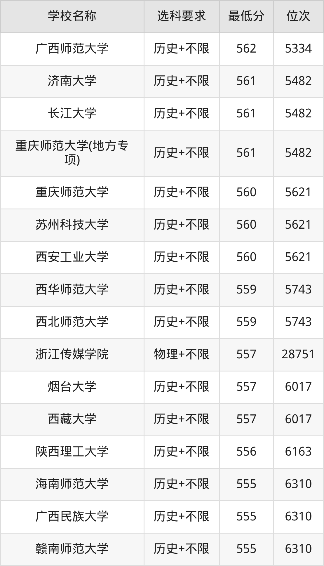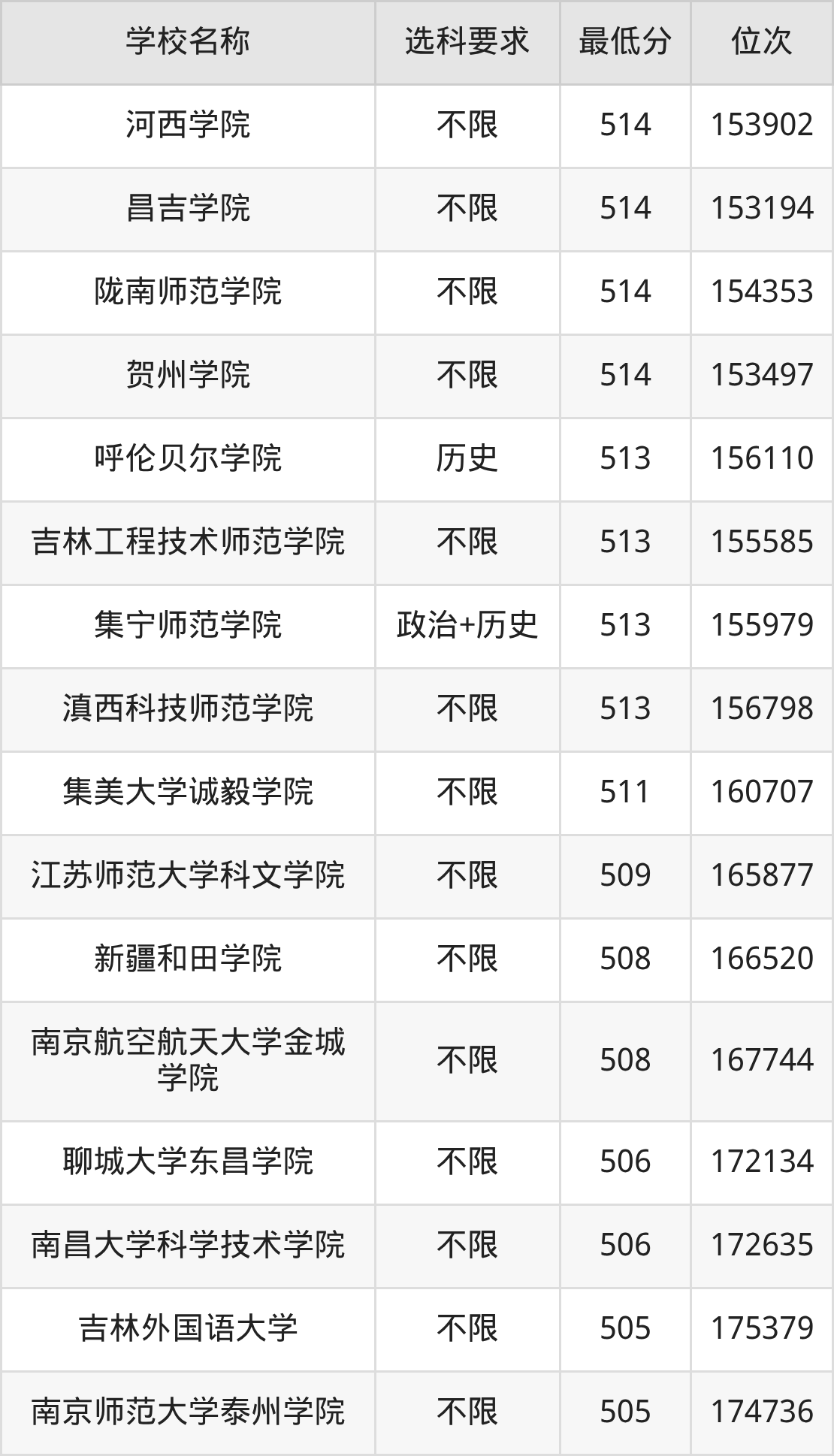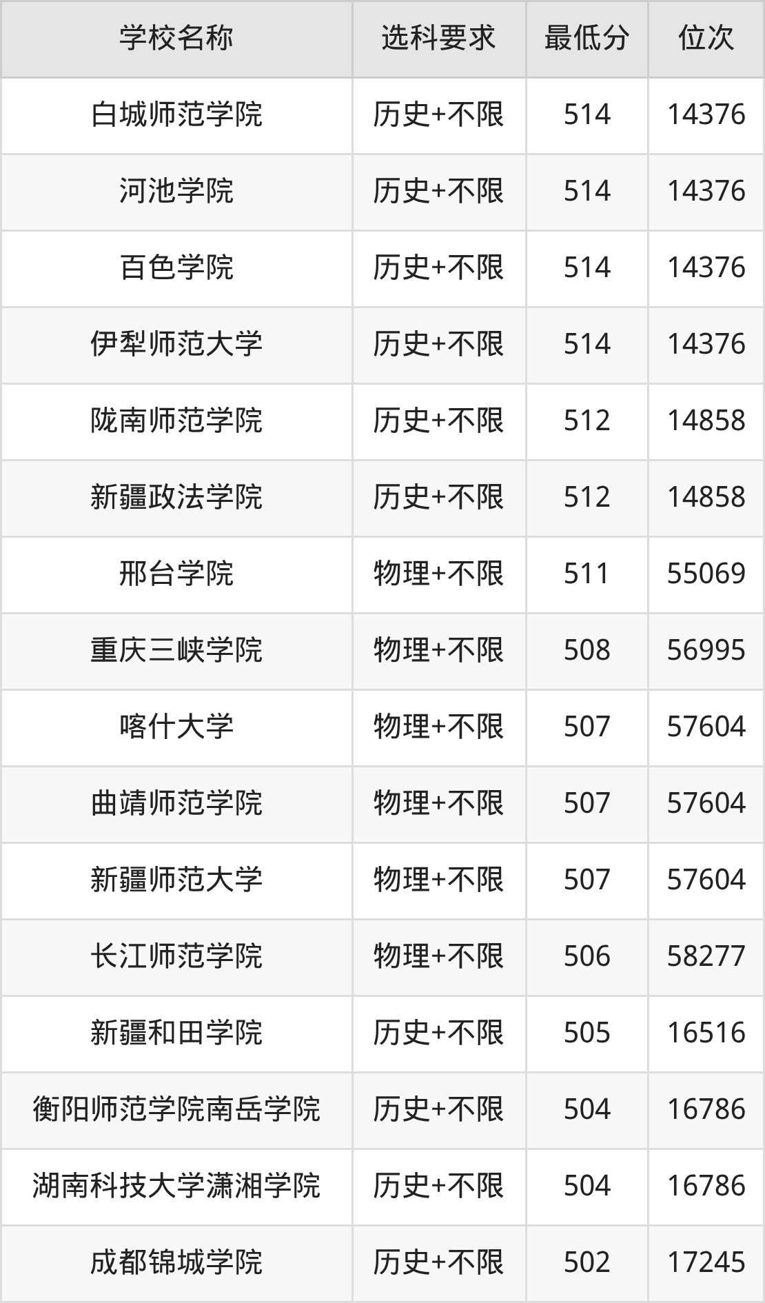 在山东招生的院校中,有235所不限选科要求,如华东师范大学、中山大学等;有60所要求考生必选“历史”,如吉林大学、湖南大学等。