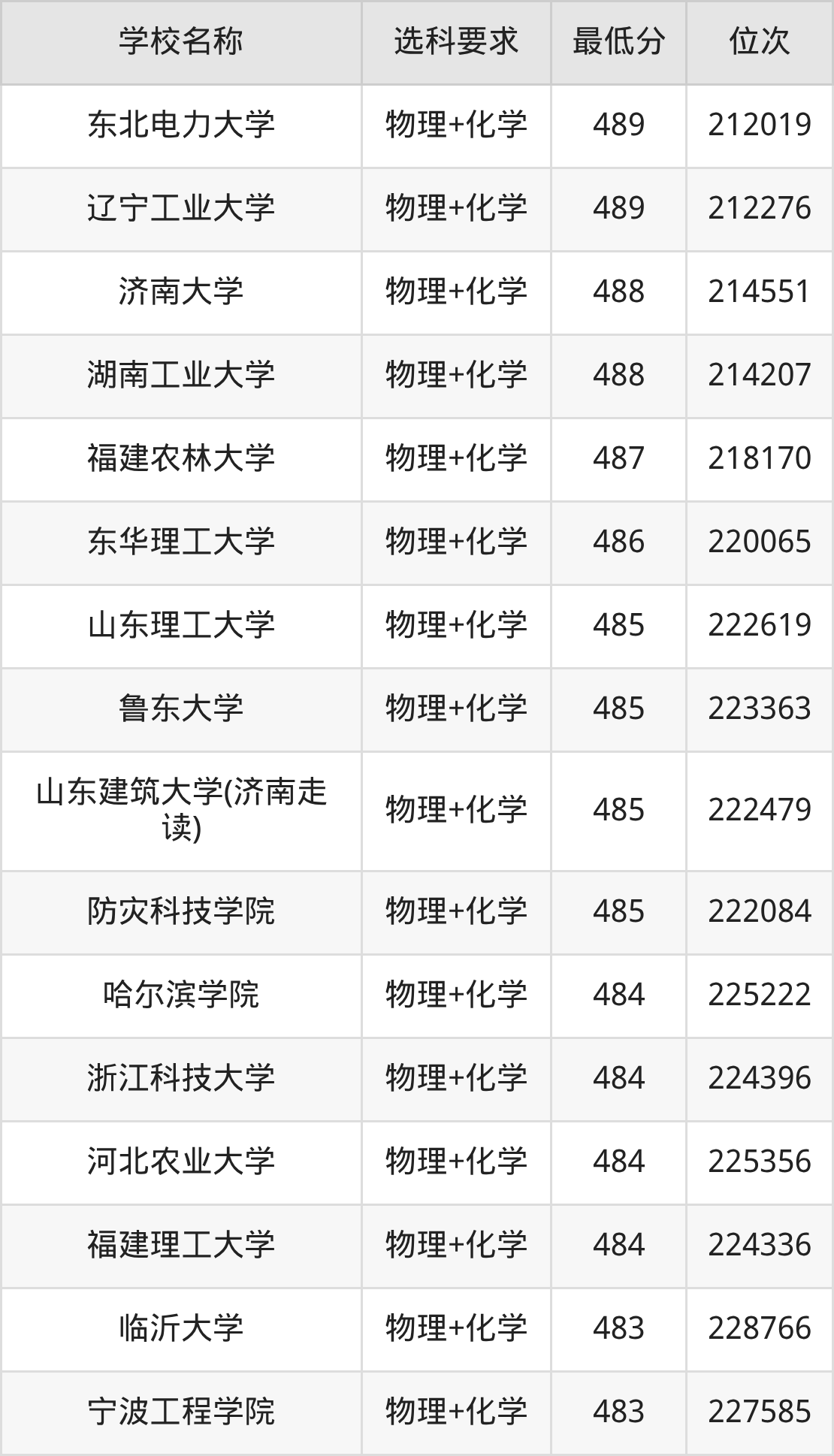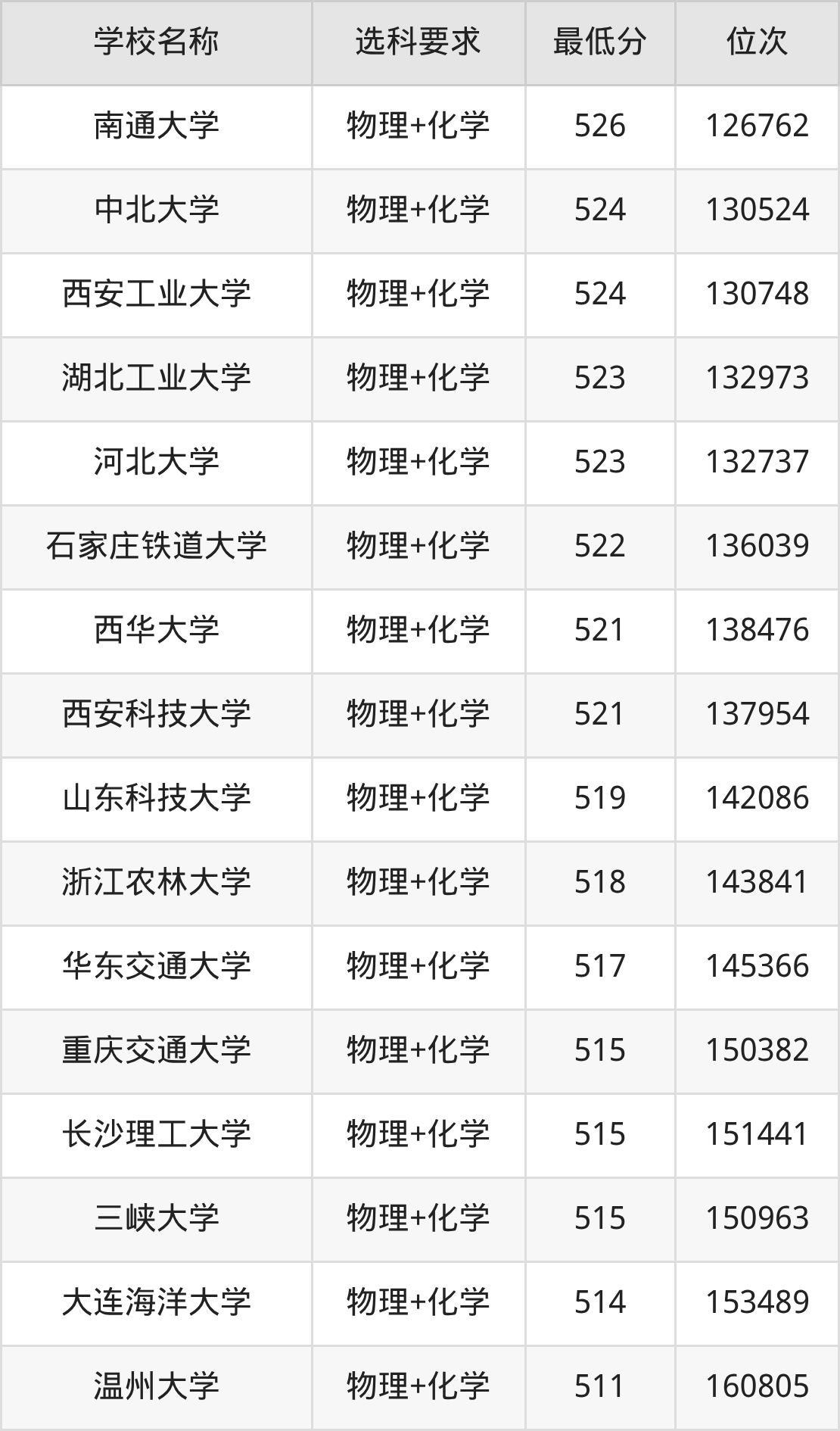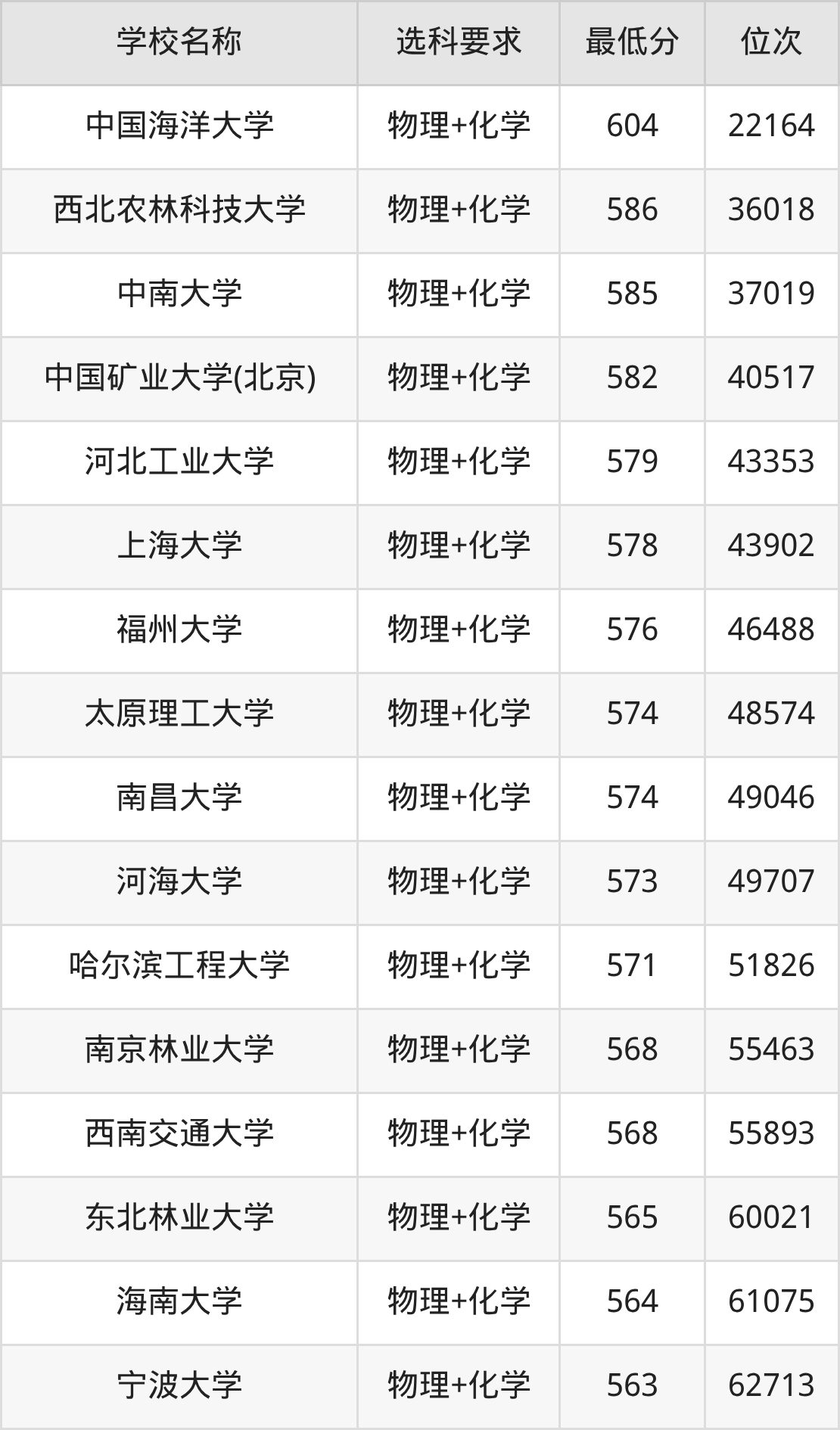 在山东招生的院校中,有243所要求考生必选“物理+化学”,如中国海洋大学、西北农林科技大学等。