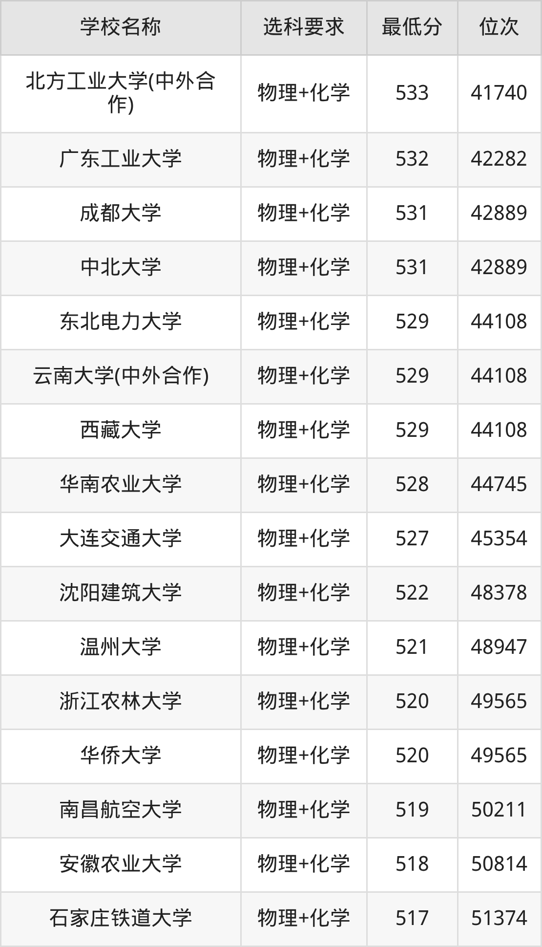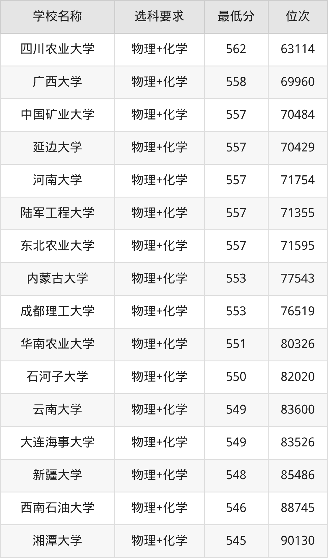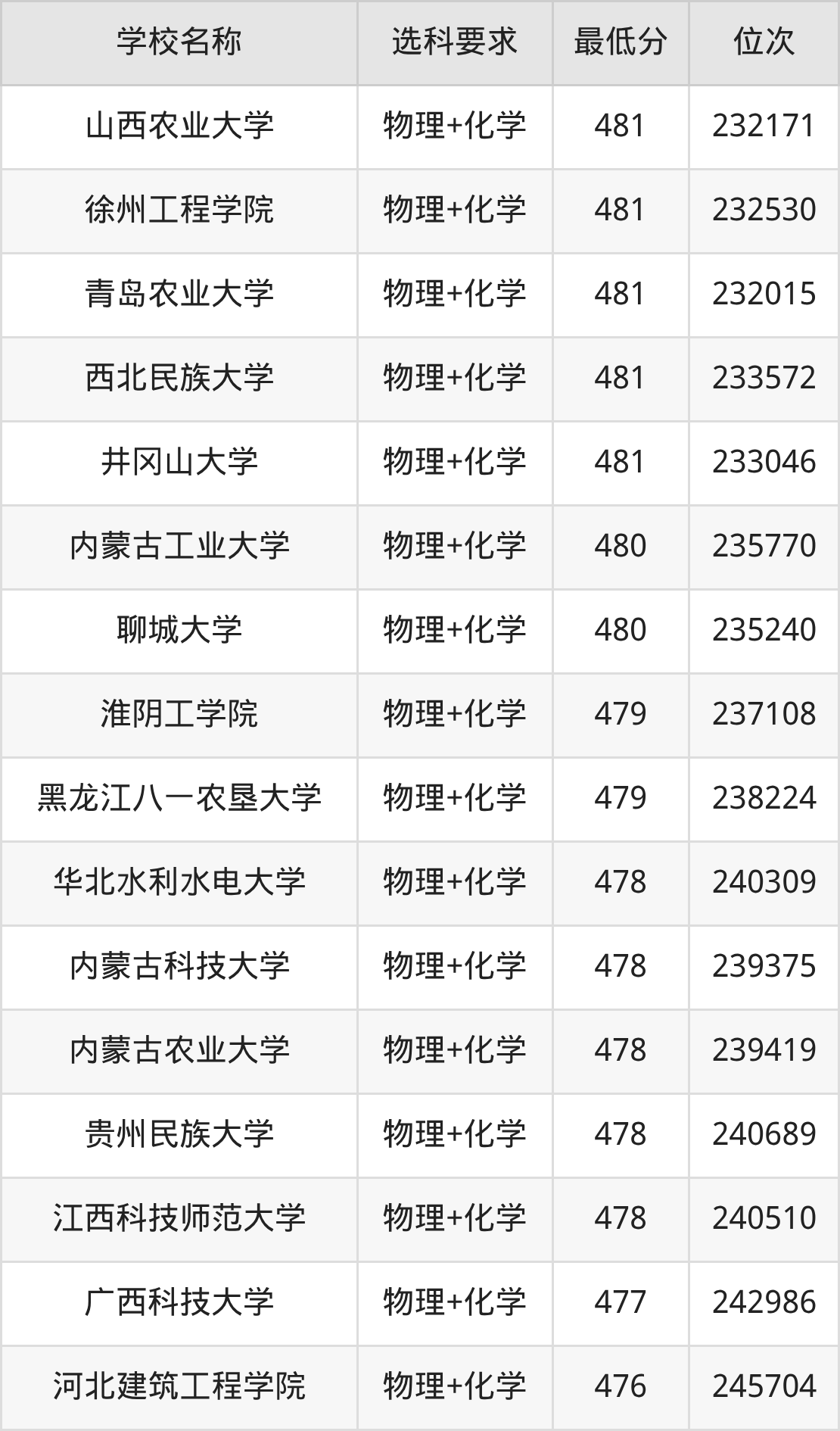 在山东招生的院校中,有243所要求考生必选“物理+化学”,如中国海洋大学、西北农林科技大学等。