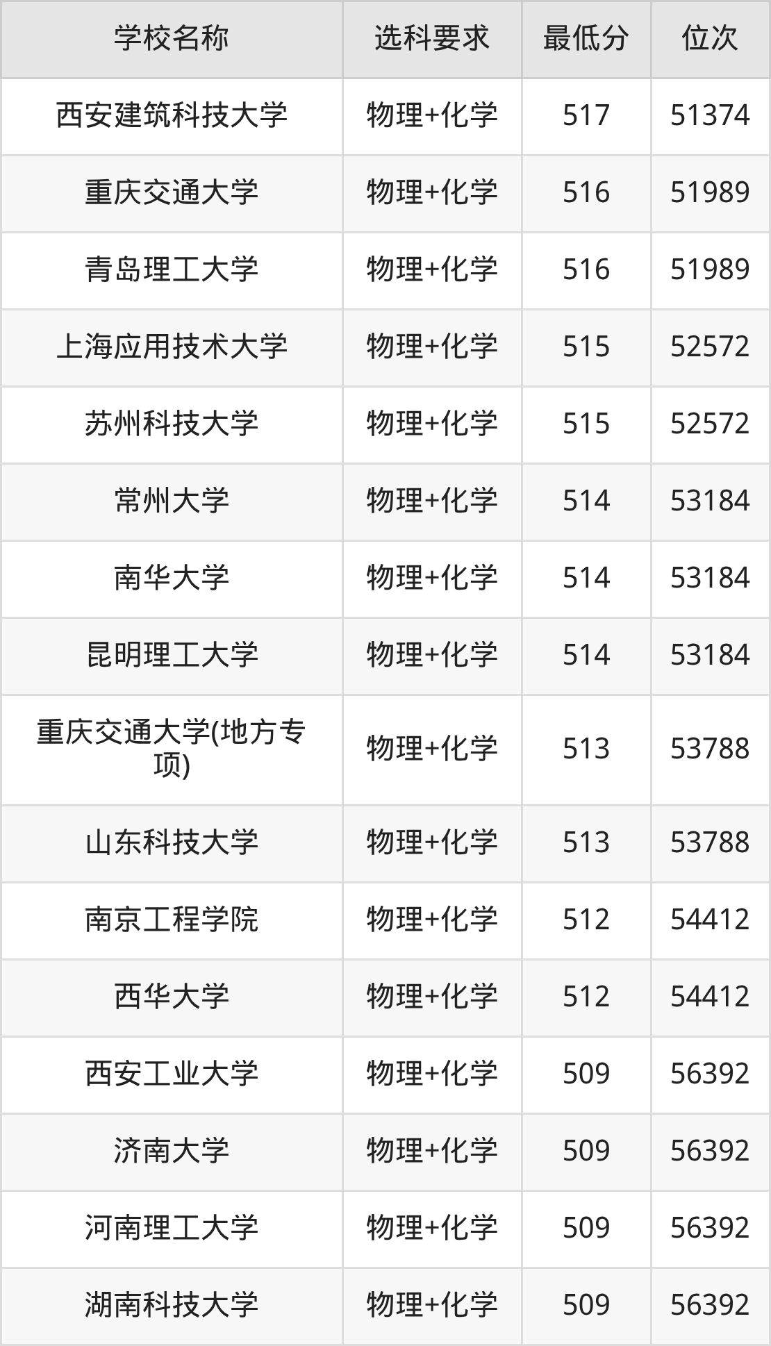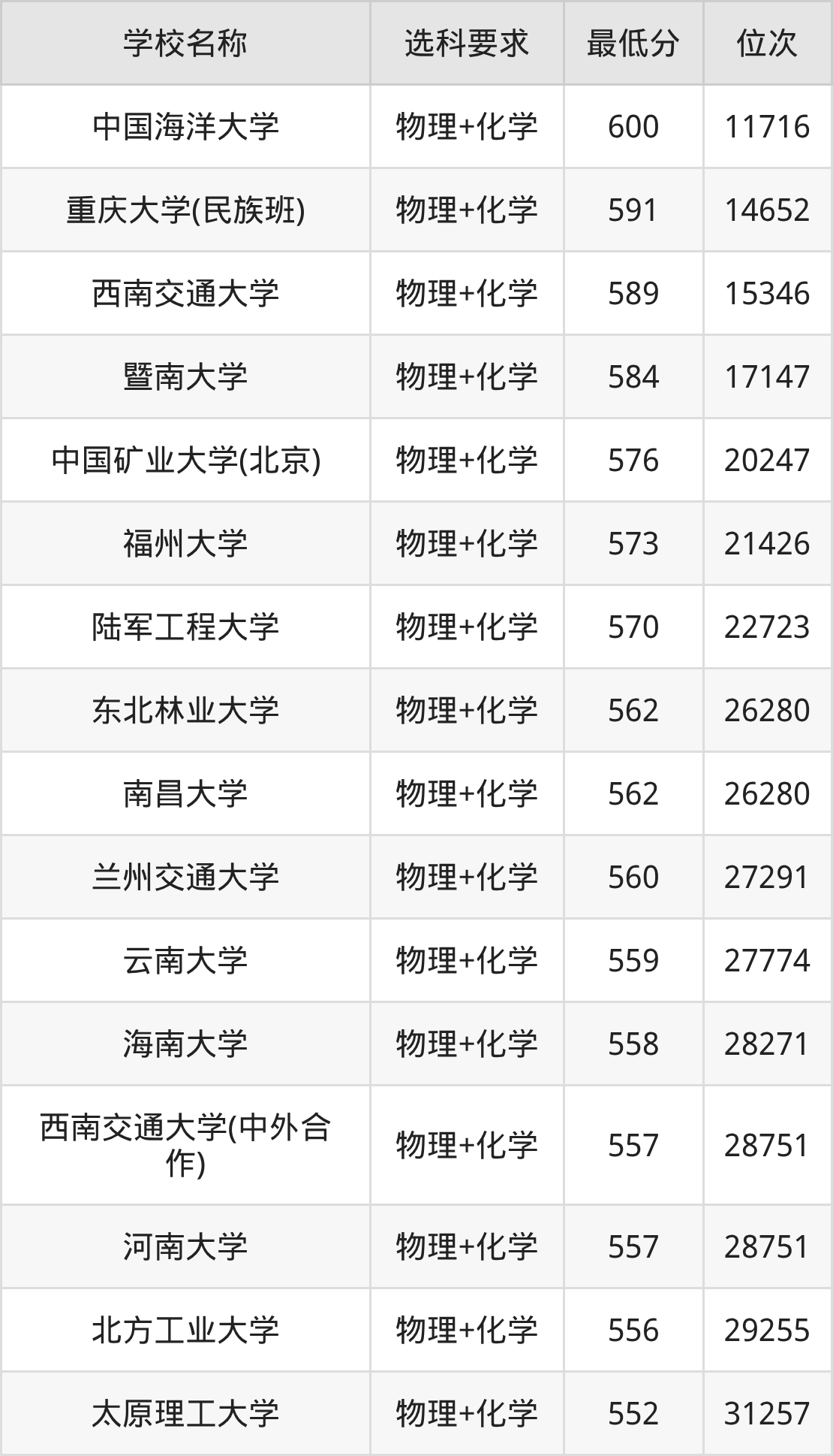 需要注意的是,土木工程专业大学中有188所要求考生必选“物理+化学”,如中国海洋大学、重庆大学(民族班)等,因此大家在报考前要提前了解清楚专业选科要求。