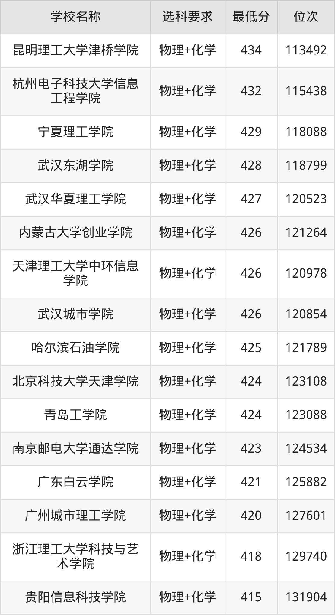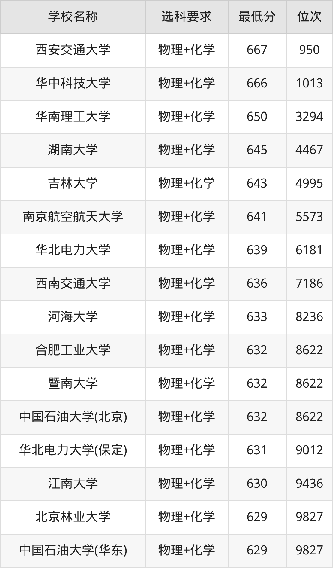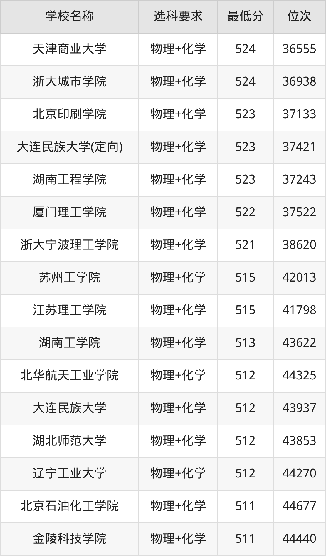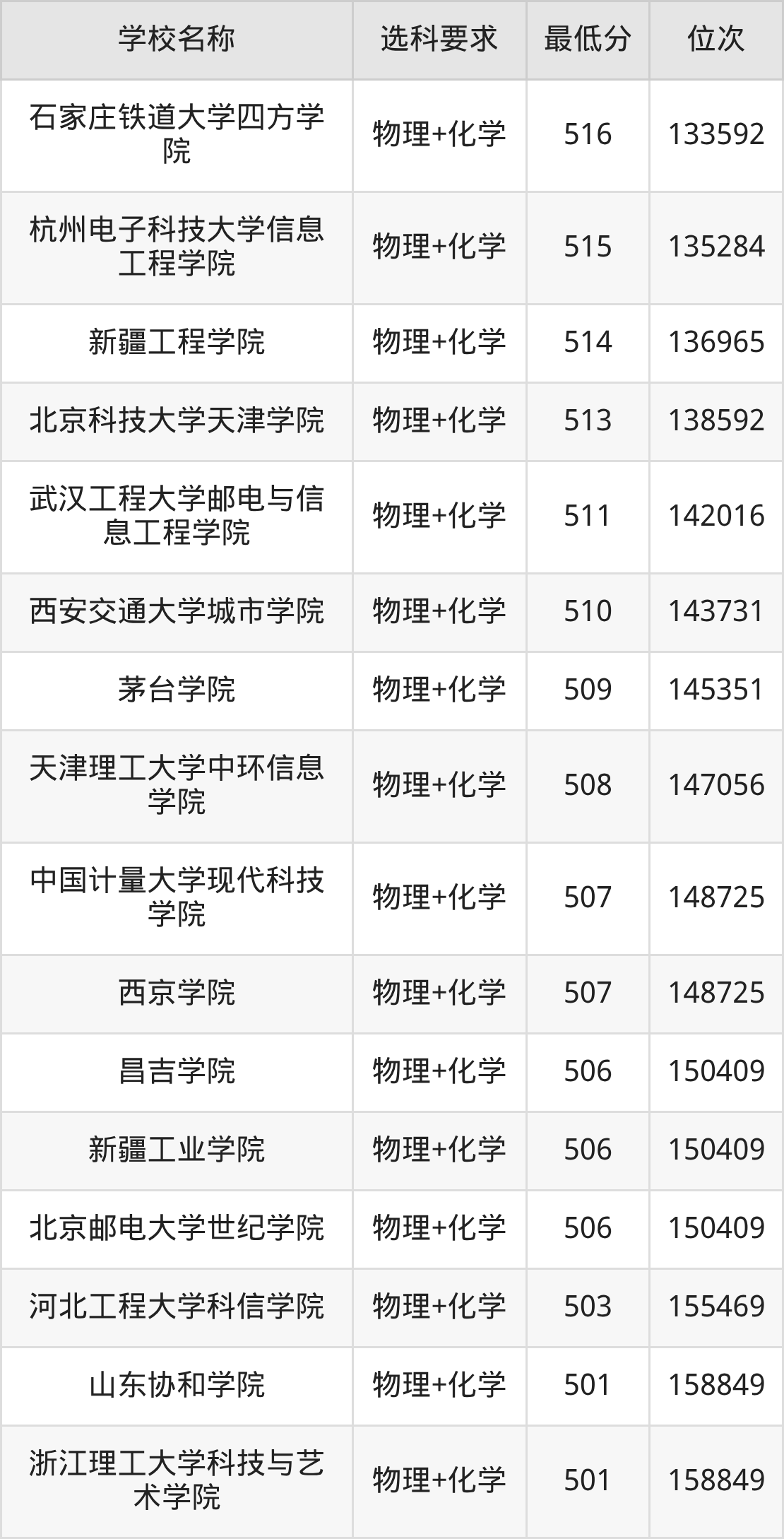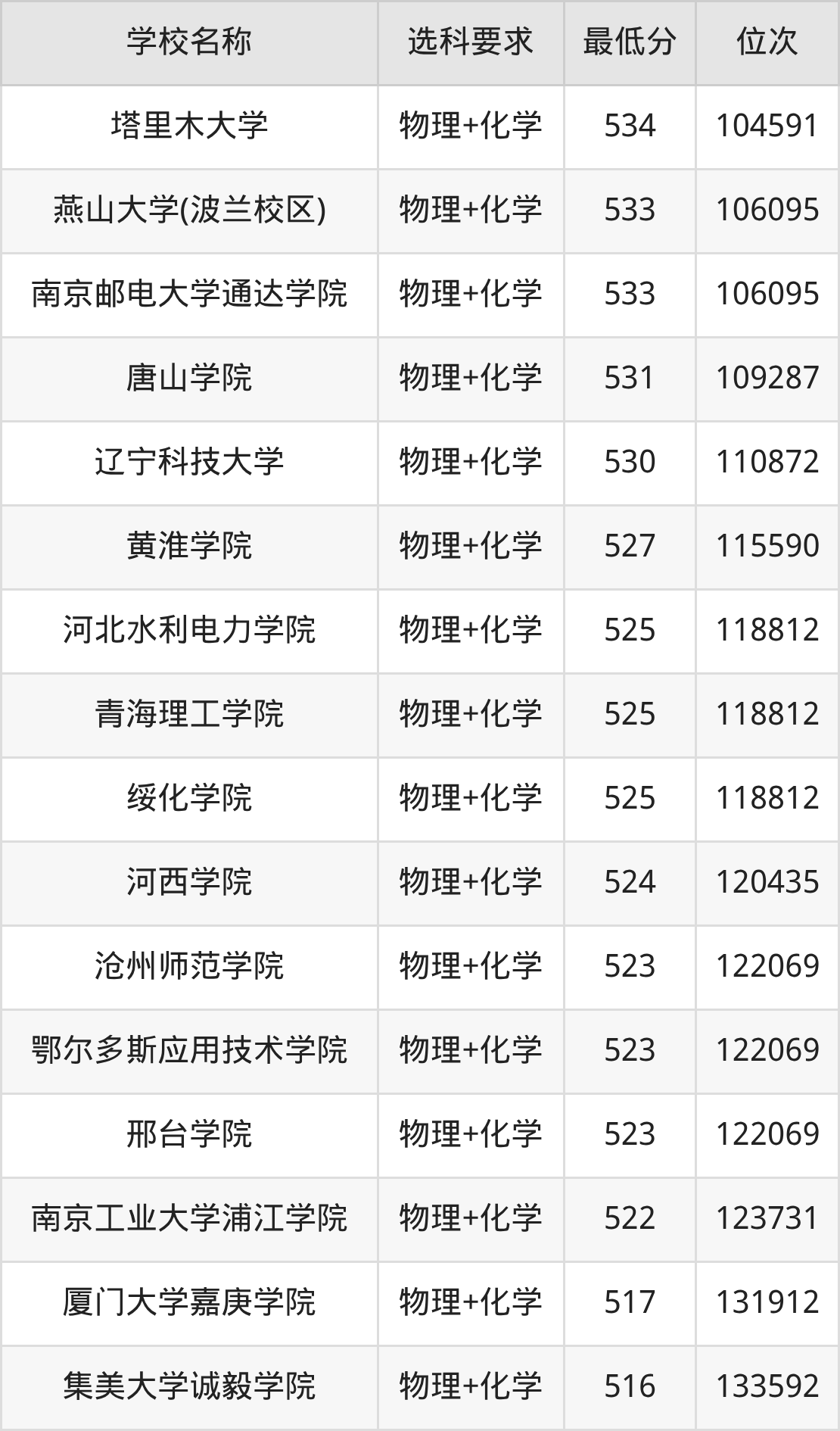 在河北招生的院校中,有240所要求考生必选“物理+化学”,如西安交通大学、华中科技大学等;有1所要求考生必选“物理+化学+生物”,如昆明理工大学。