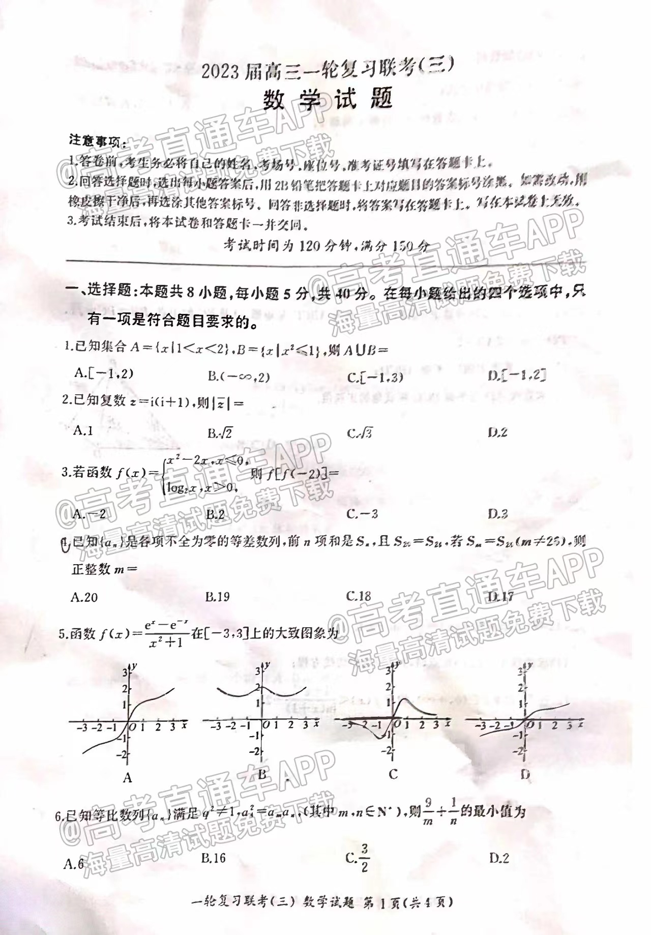 1.2023安徽百师联盟高三11月联考数学试卷详情