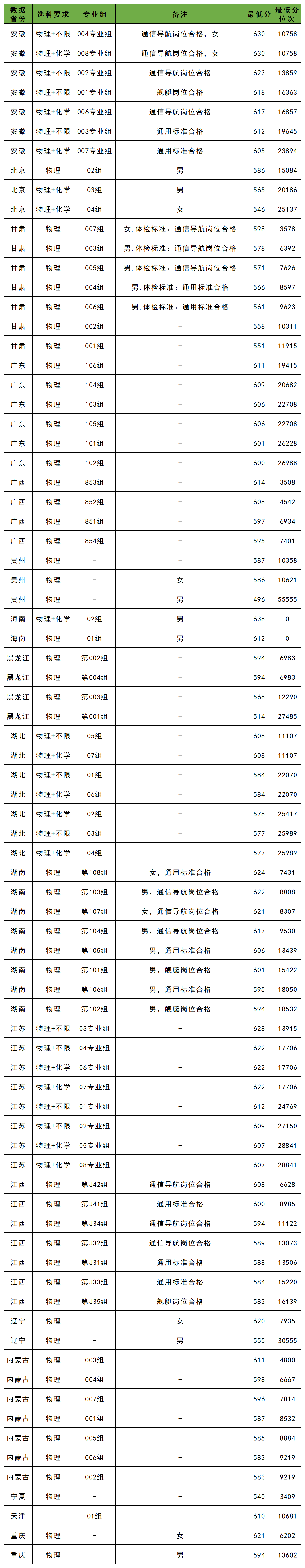 物理类约500-650分,低于生长军官批次,江苏等生源大省或达598+分。