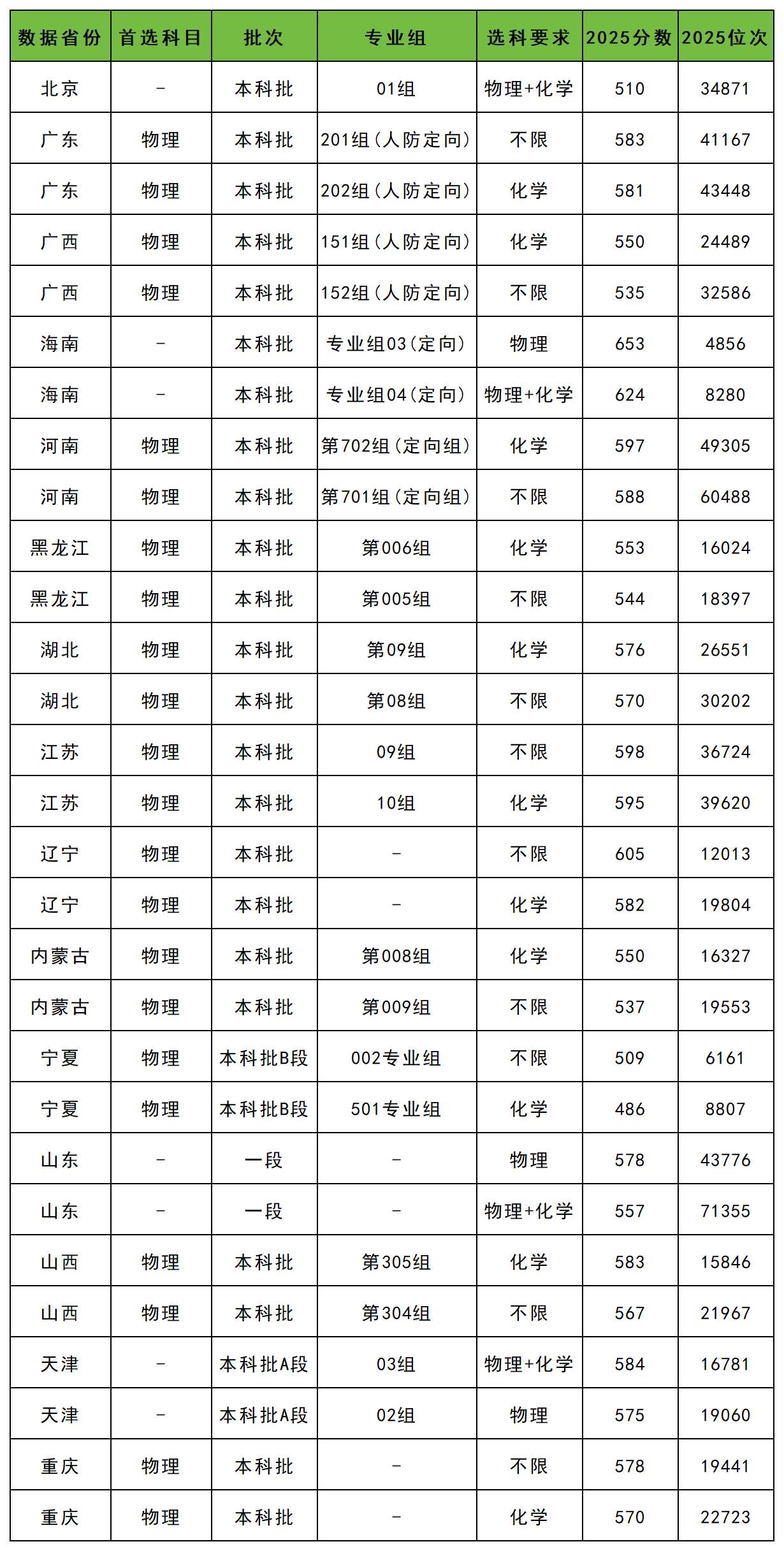 注:部分专业如“通信工程”“网络工程”同时开设无军籍本科招生,生长军官学员需通过军检及政审。