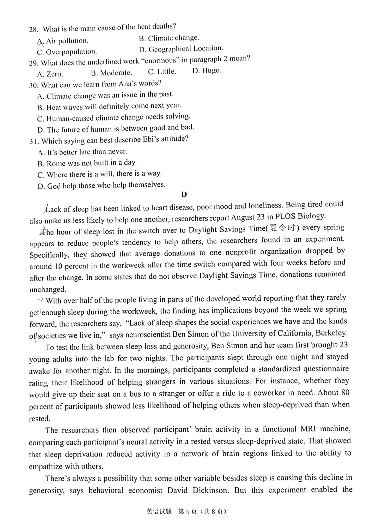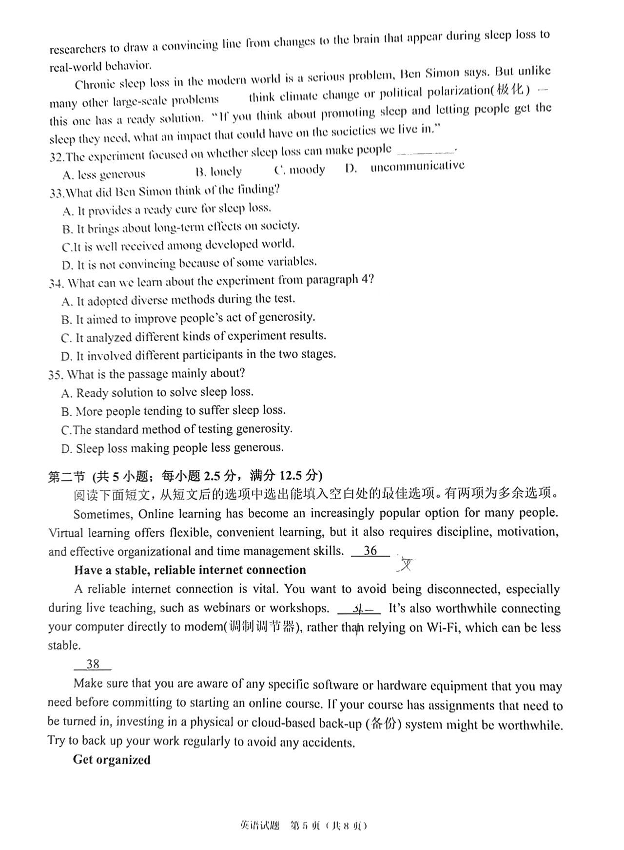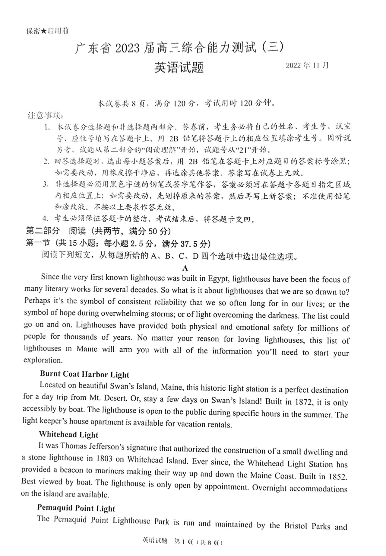 1.2023广东高三综合能力测试(光大联考)英语试卷详情