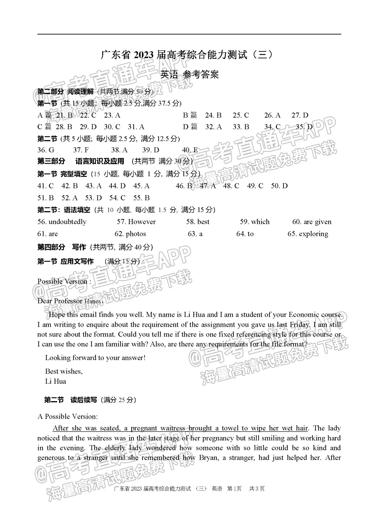 一.2023广东高三综合能力测试(光大联考)英语试卷详情及答案解析汇总