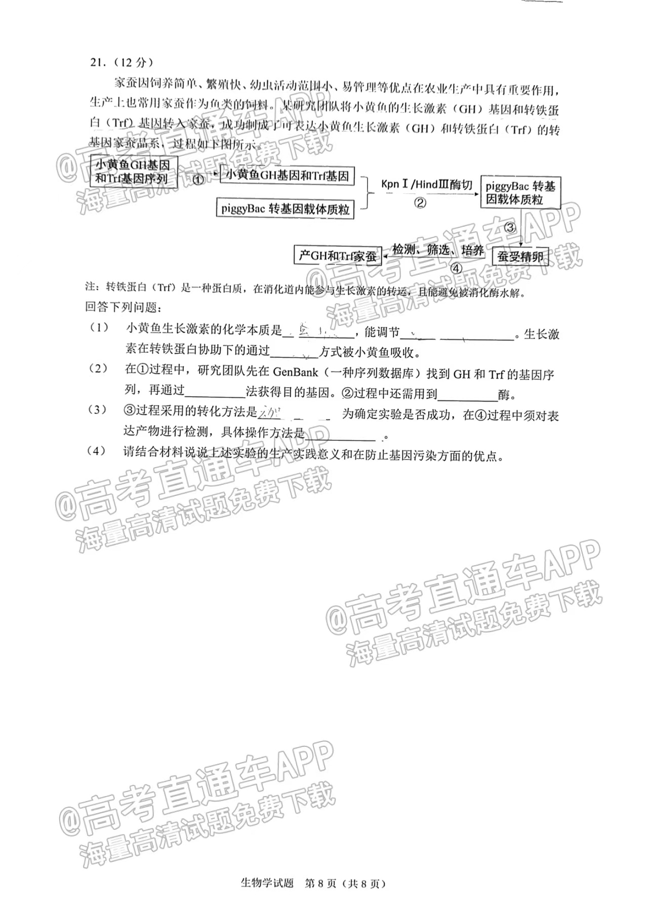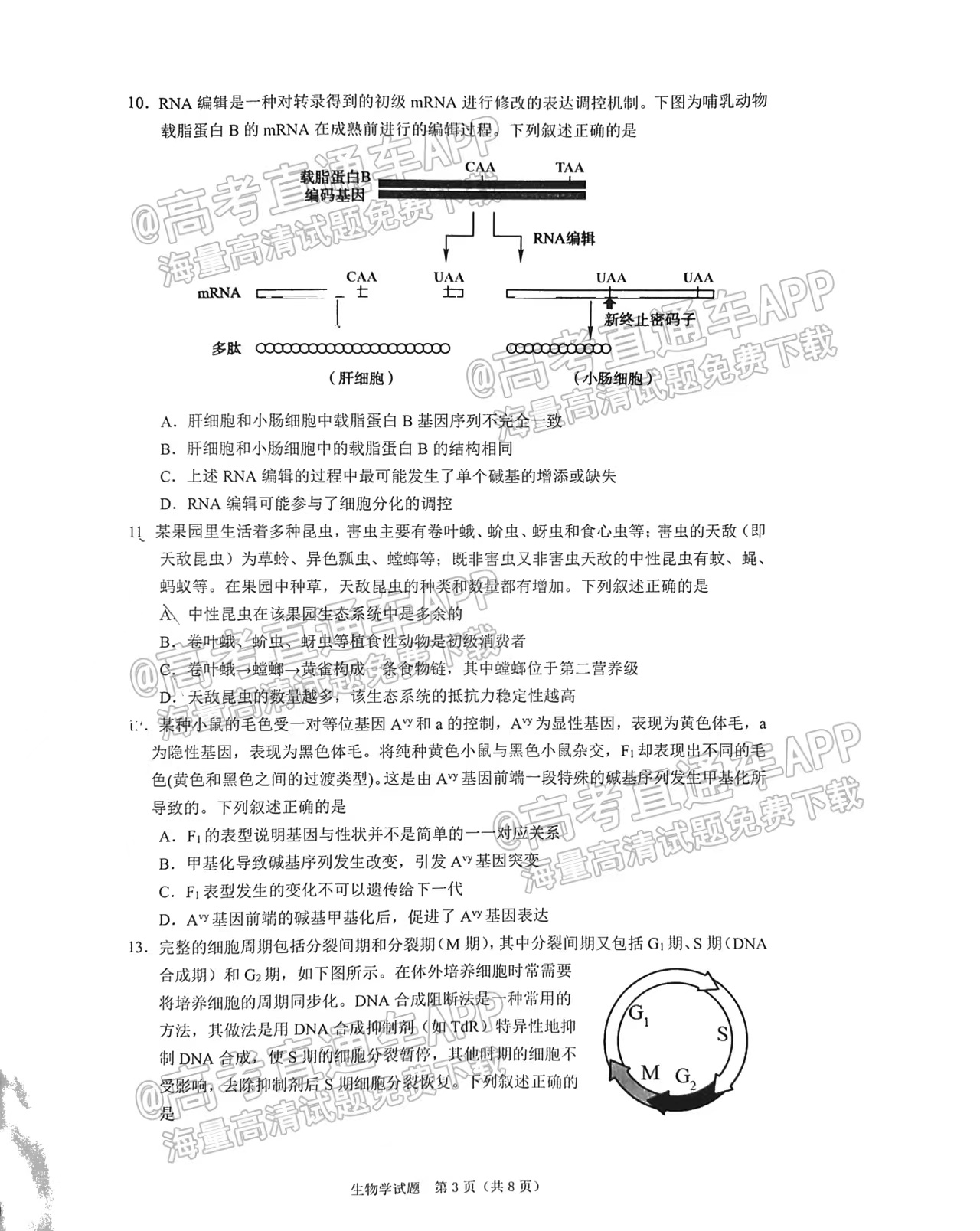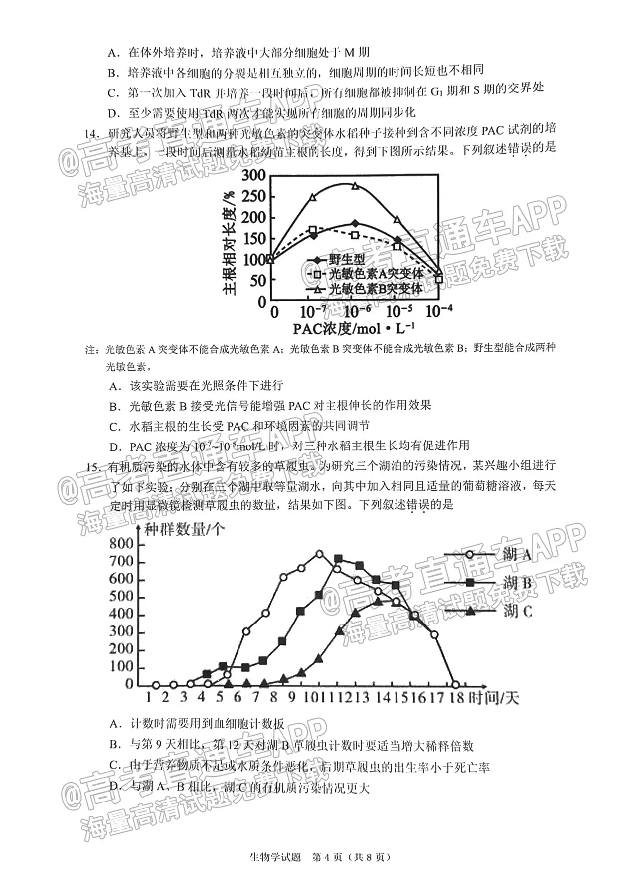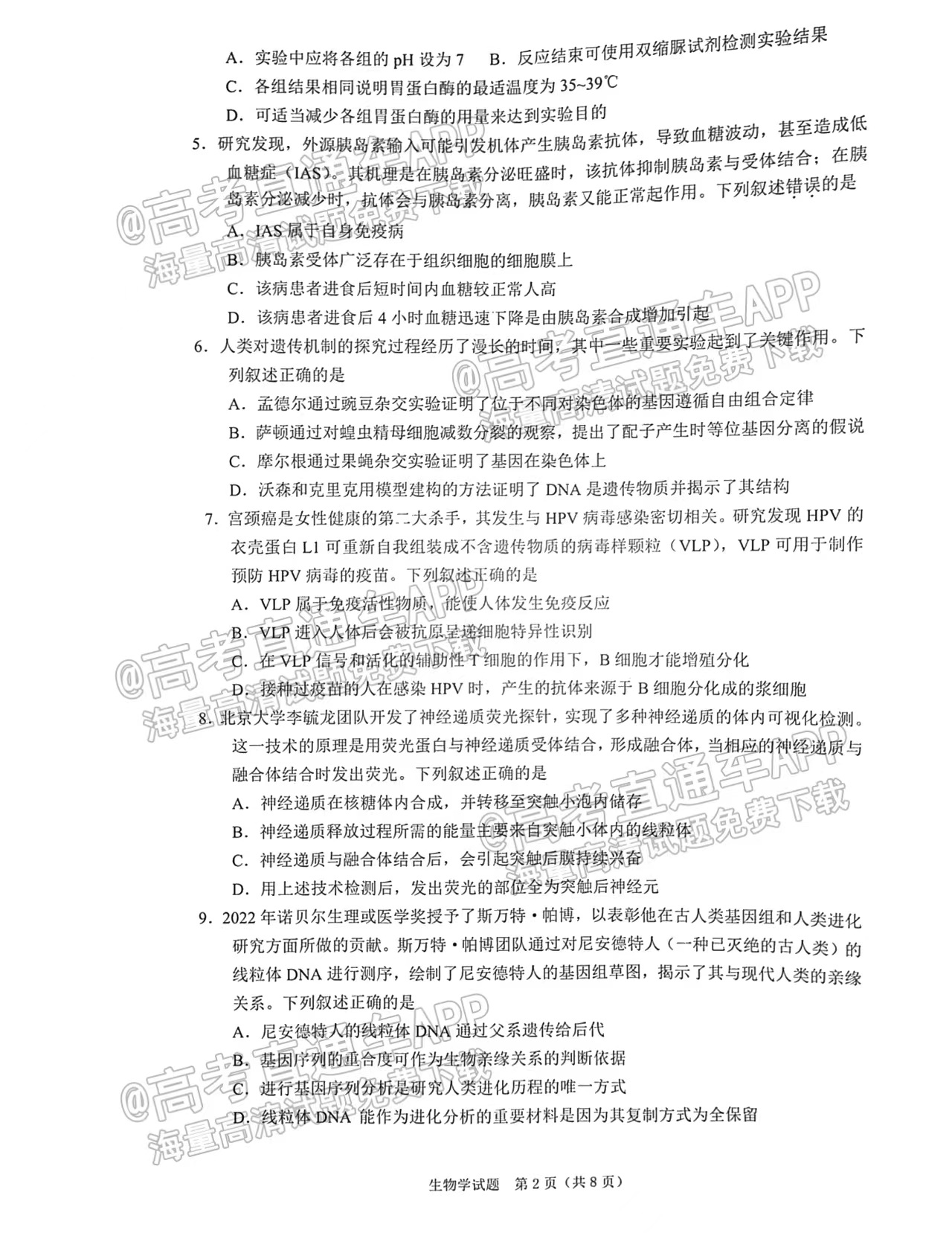 本次考试还未开始,等生物考试结束,生物的试题及答案一公布,小编将会在本文及时更新,同学们可以持续关注本文或高考100网站!