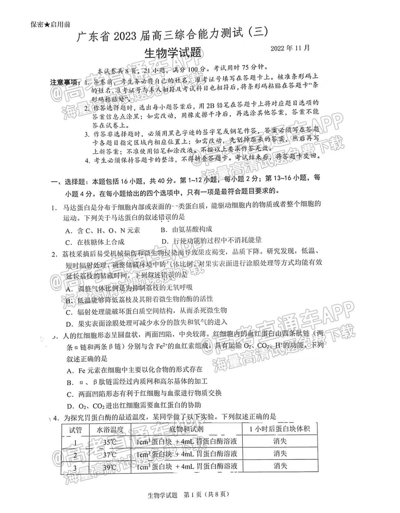 1.2023广东高三综合能力测试(光大联考)生物试卷详情