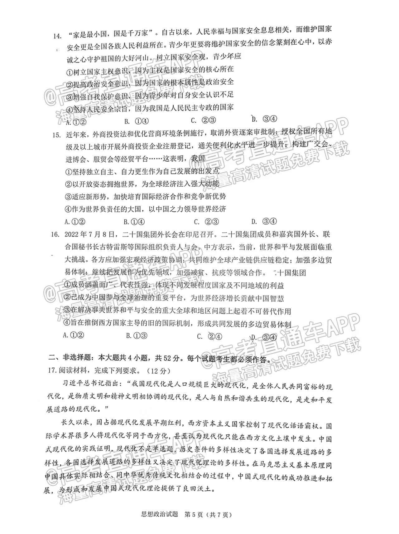 本次考试还未开始,等政治考试结束,政治的试题及答案一公布,小编将会在本文及时更新,同学们可以持续关注本文或高考100网站!