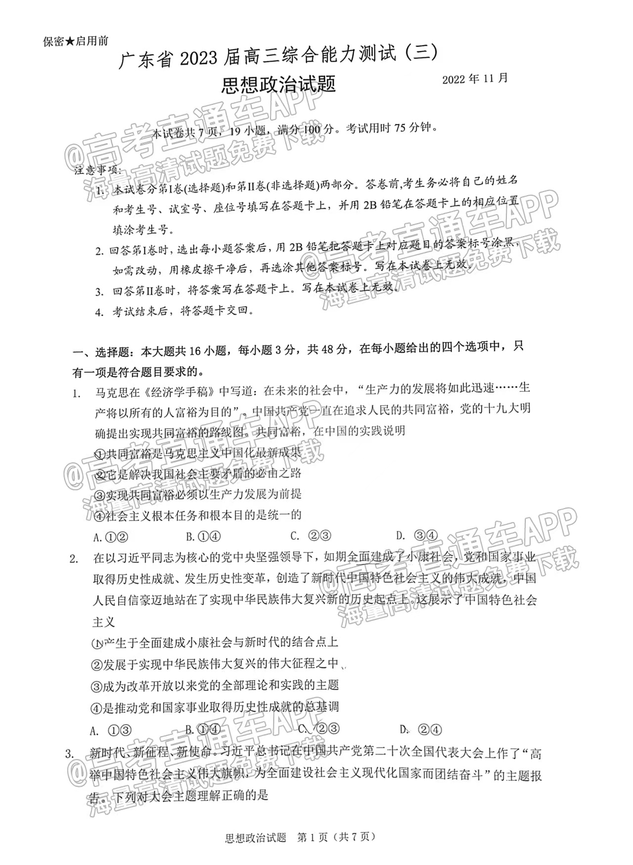 1.2023广东高三综合能力测试(光大联考)政治试卷详情