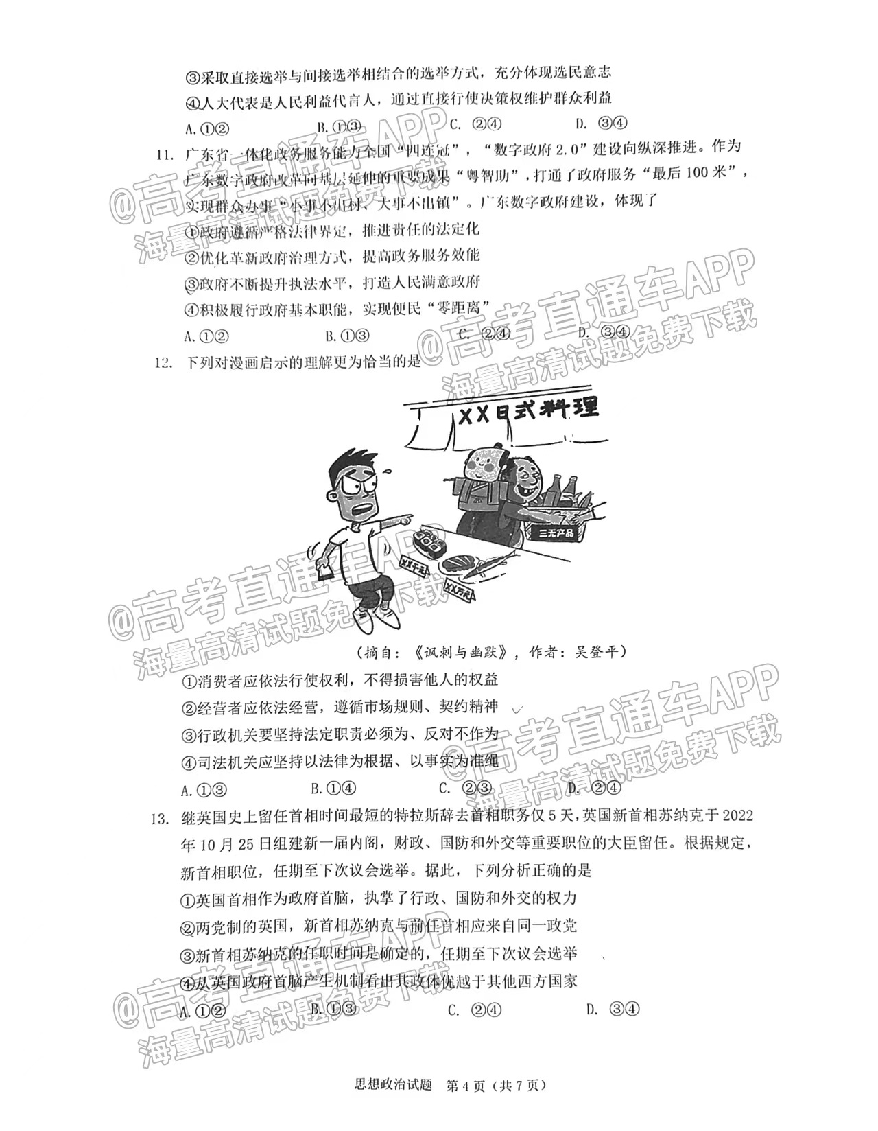 一.2023广东高三综合能力测试(光大联考)政治试卷详情及答案解析汇总
