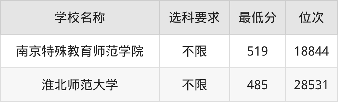 需要注意的是,特殊教育专业大学中有2所不限选科要求,如南京特殊教育师范学院、淮北师范大学,因此大家在报考前要提前了解清楚专业选科要求。