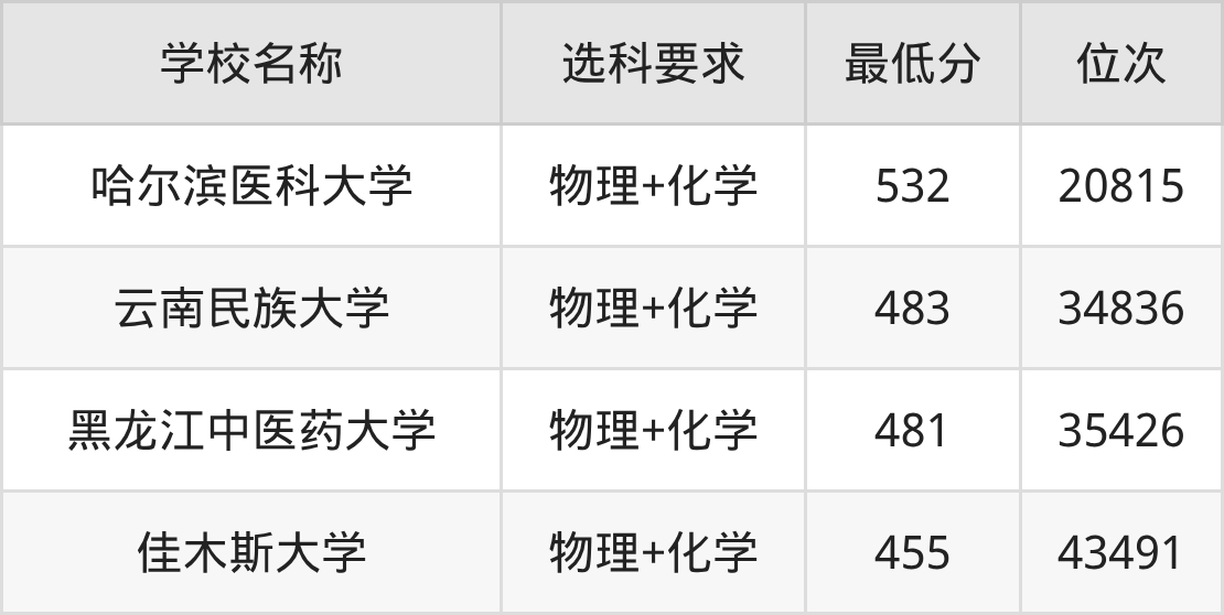 需要注意的是,药物分析专业大学中有4所要求考生必选“物理+化学”,如哈尔滨医科大学、云南民族大学等,因此大家在报考前要提前了解清楚专业选科要求。