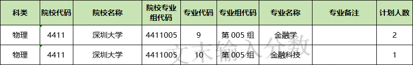 第005组:专业组代码为4411005,包含专业金融学、金融科技。