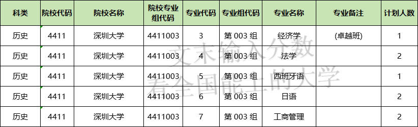 第003组:专业组代码为4411003,包含专业西班牙语、经济学、法学、日语、工商管理。
