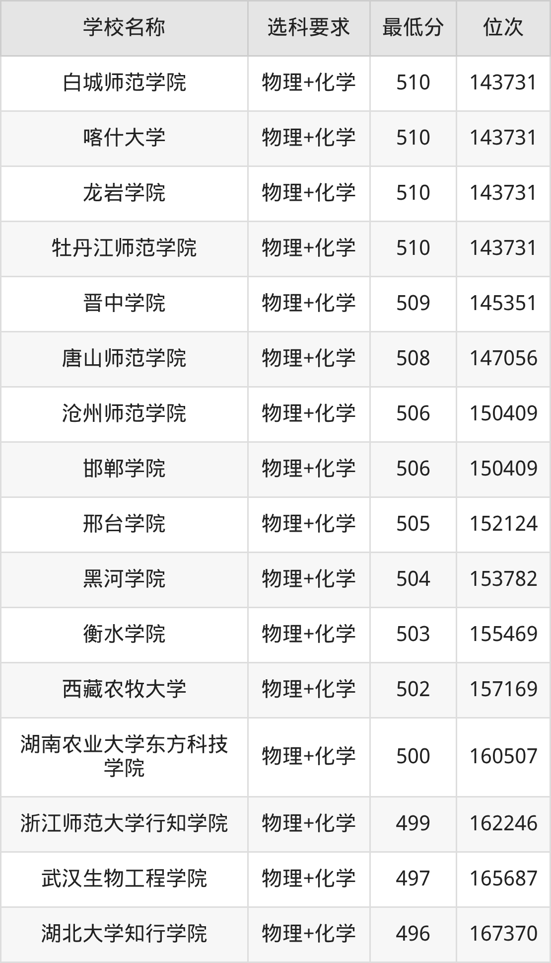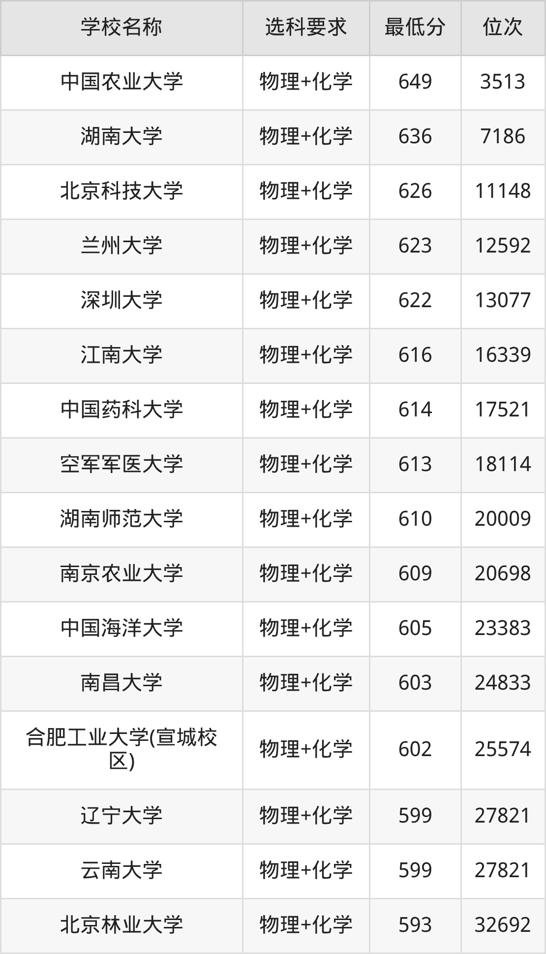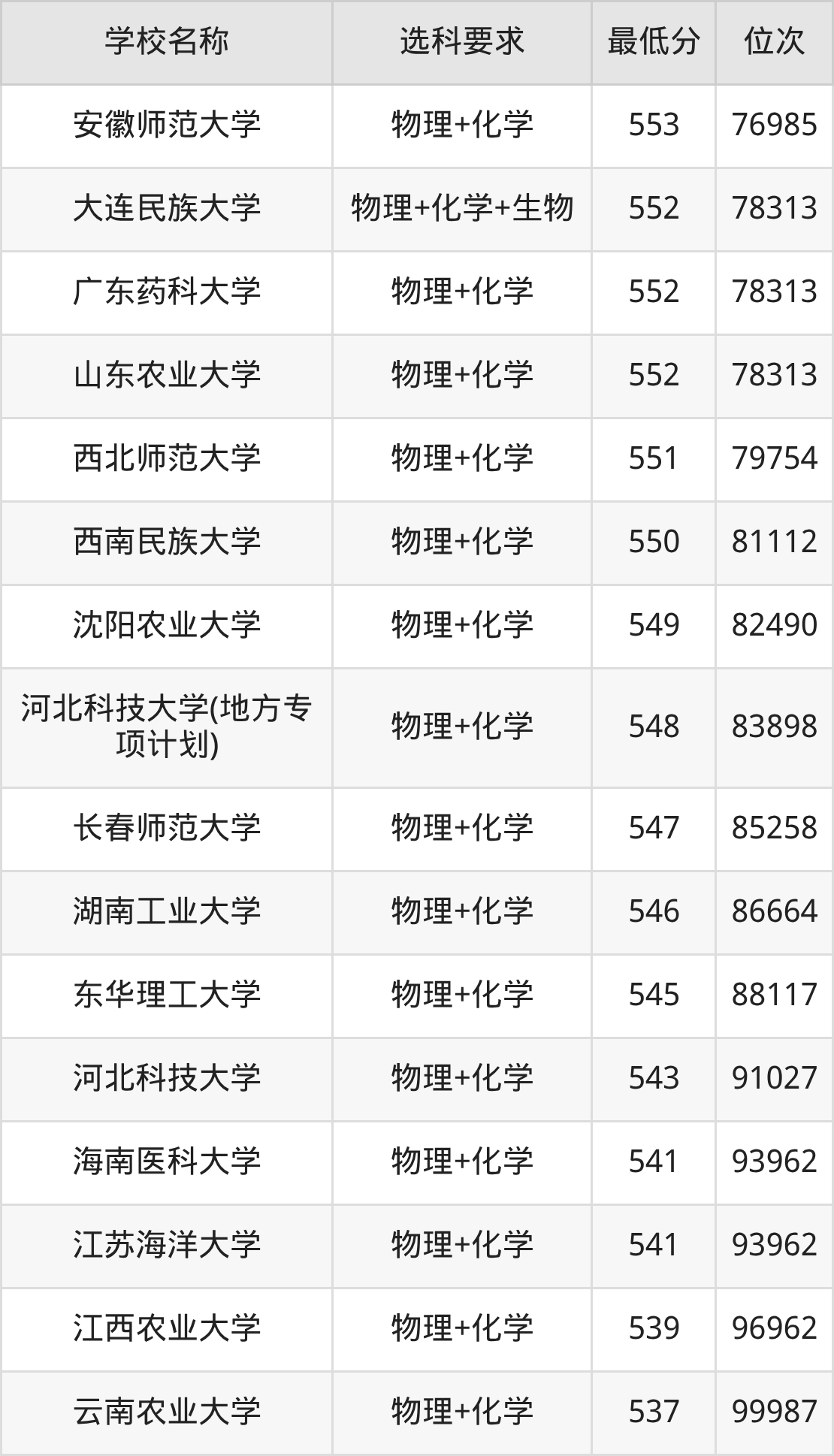 在河北招生的院校中,有107所要求考生必选“物理+化学”,如中国农业大学、湖南大学等;有8所要求考生必选“物理+化学+生物”,如长春理工大学、四川师范大学等。