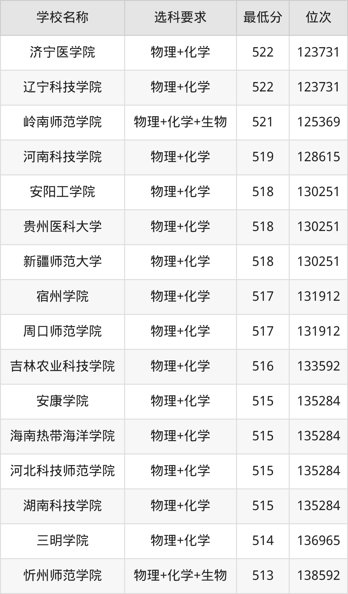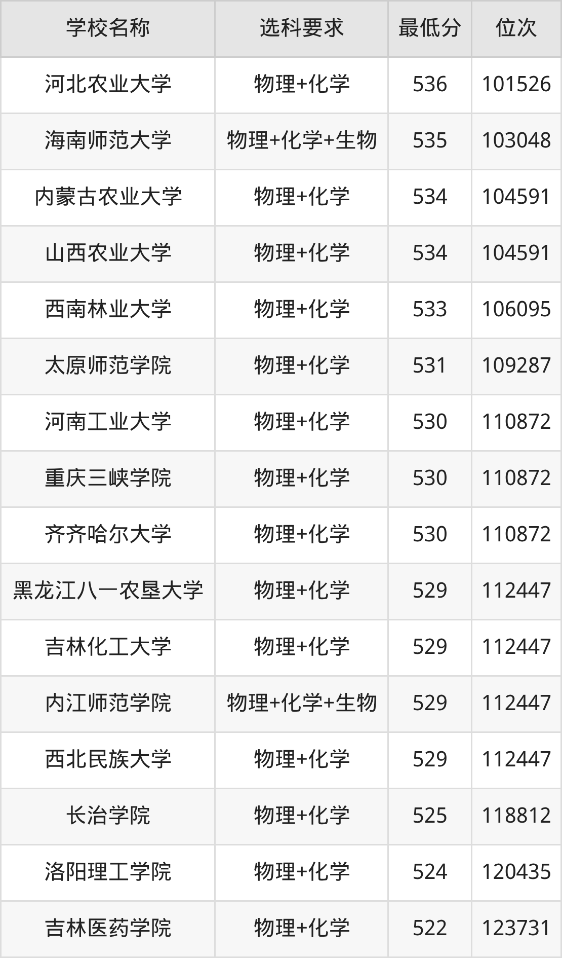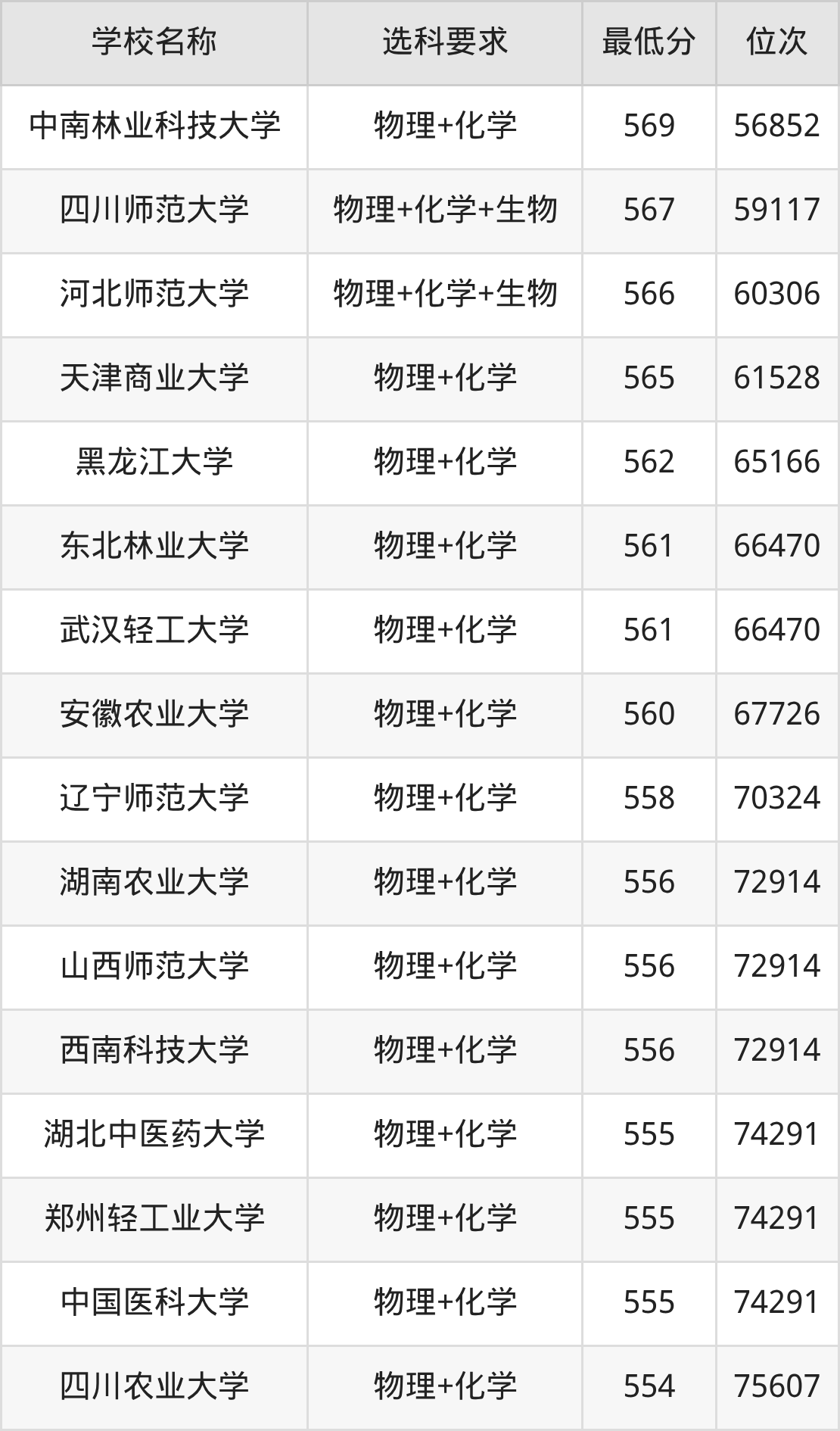 在河北招生的院校中,有107所要求考生必选“物理+化学”,如中国农业大学、湖南大学等;有8所要求考生必选“物理+化学+生物”,如长春理工大学、四川师范大学等。