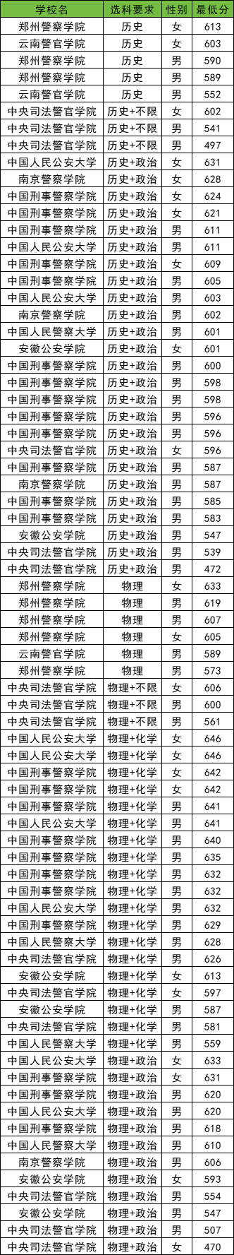 4、特殊要求:涉外警务专业外语单科成绩≥105分;公安技术类专业选考科目为物理和化学,公安学类选考思想政治;女生招生比例不超过15%。