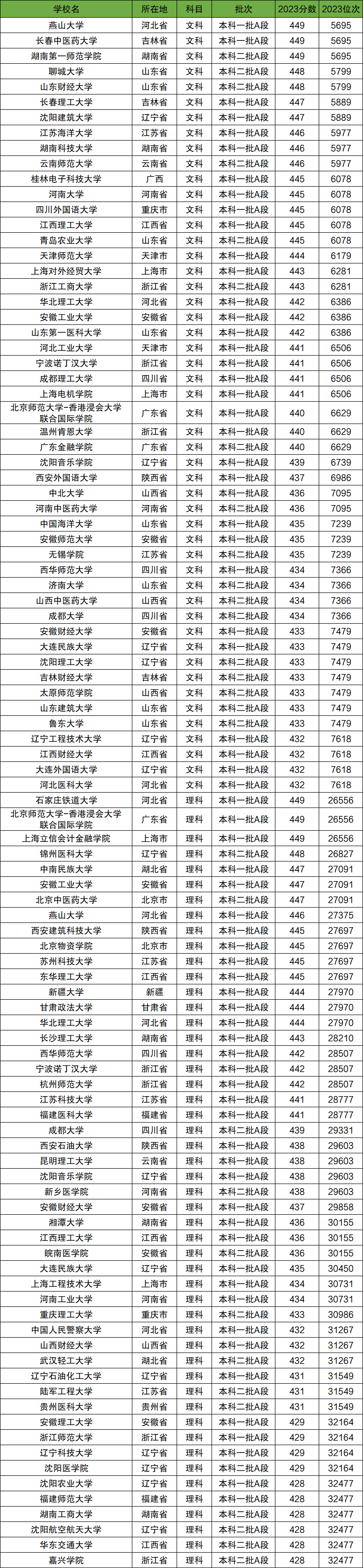 (省内在文科400-450分招生的大学共计13所,本文篇幅有限,只列举10所大学。)
