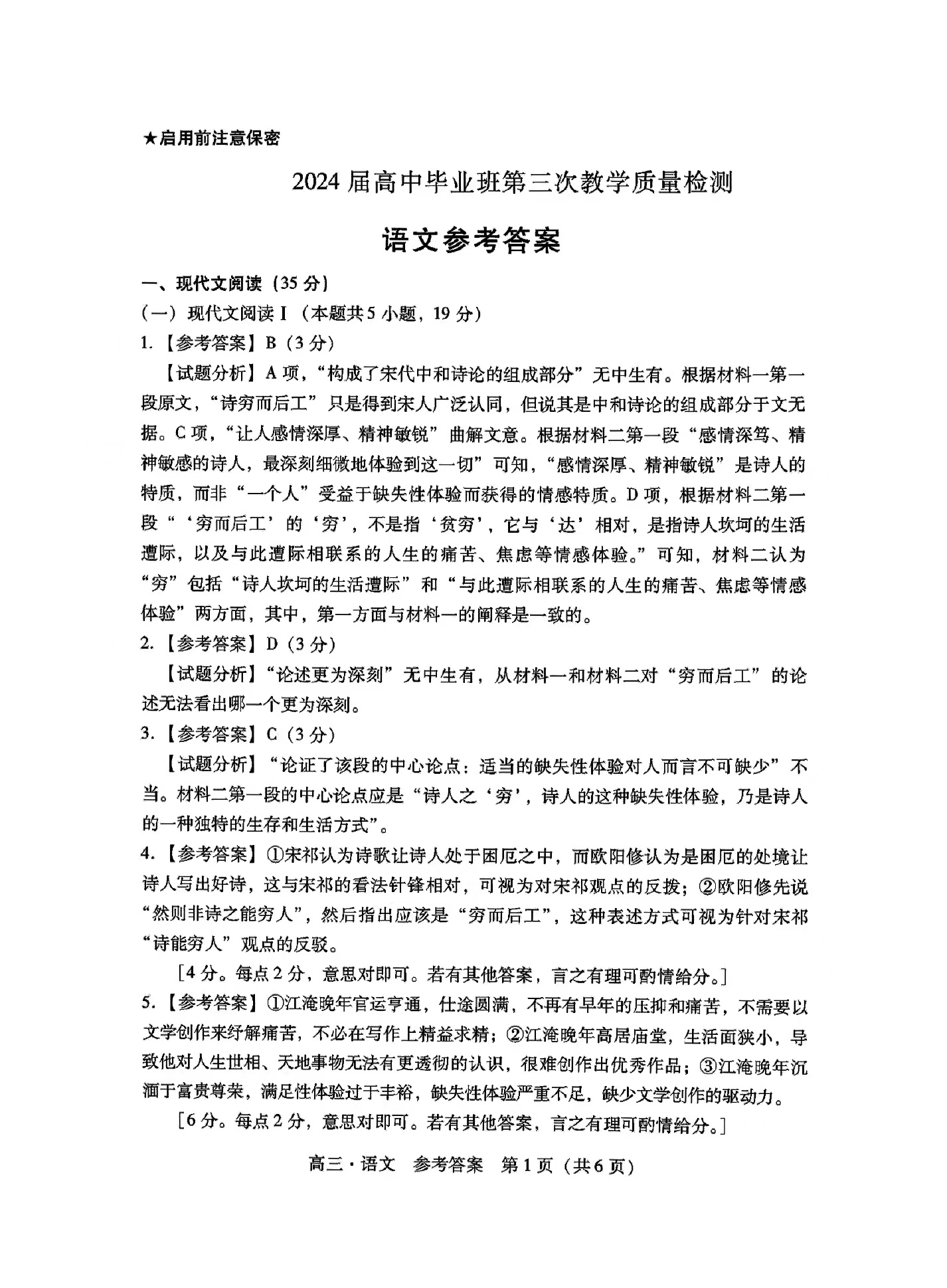 一、2024广东一模语文试卷答案