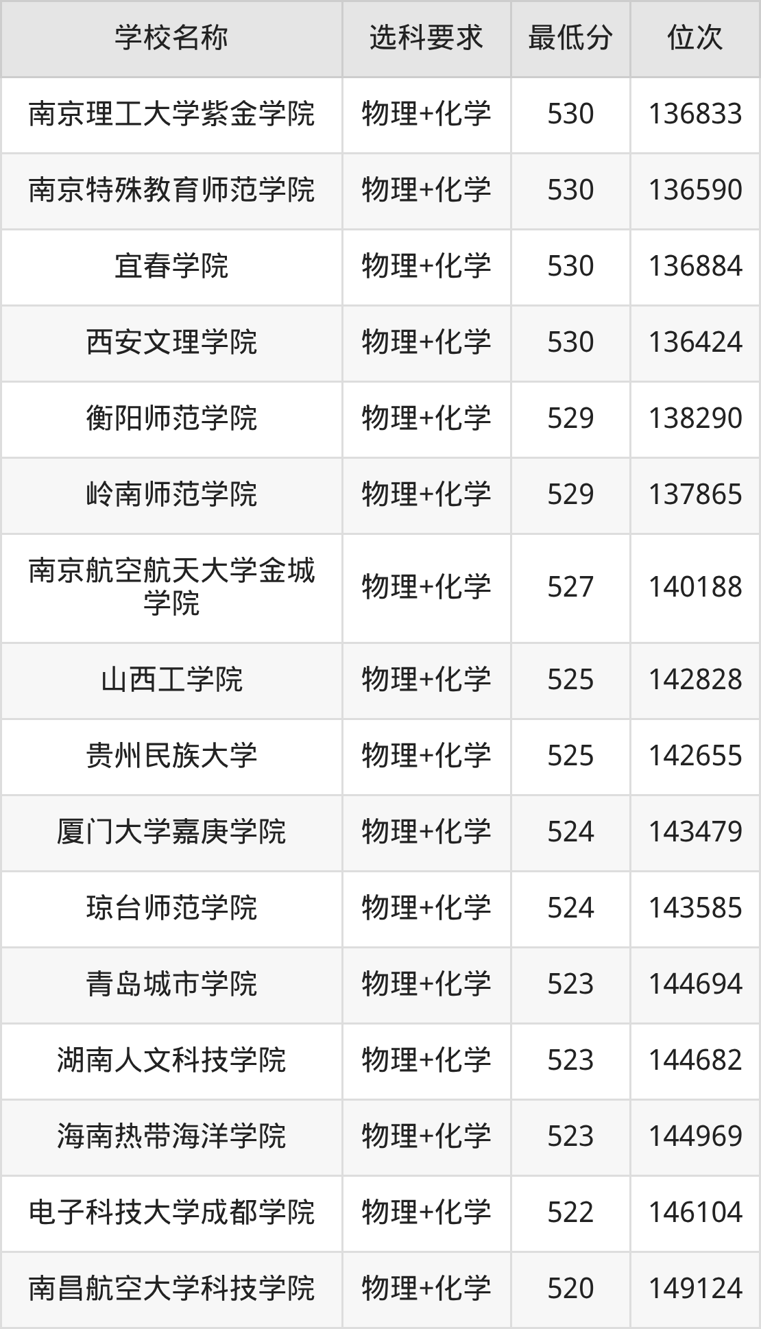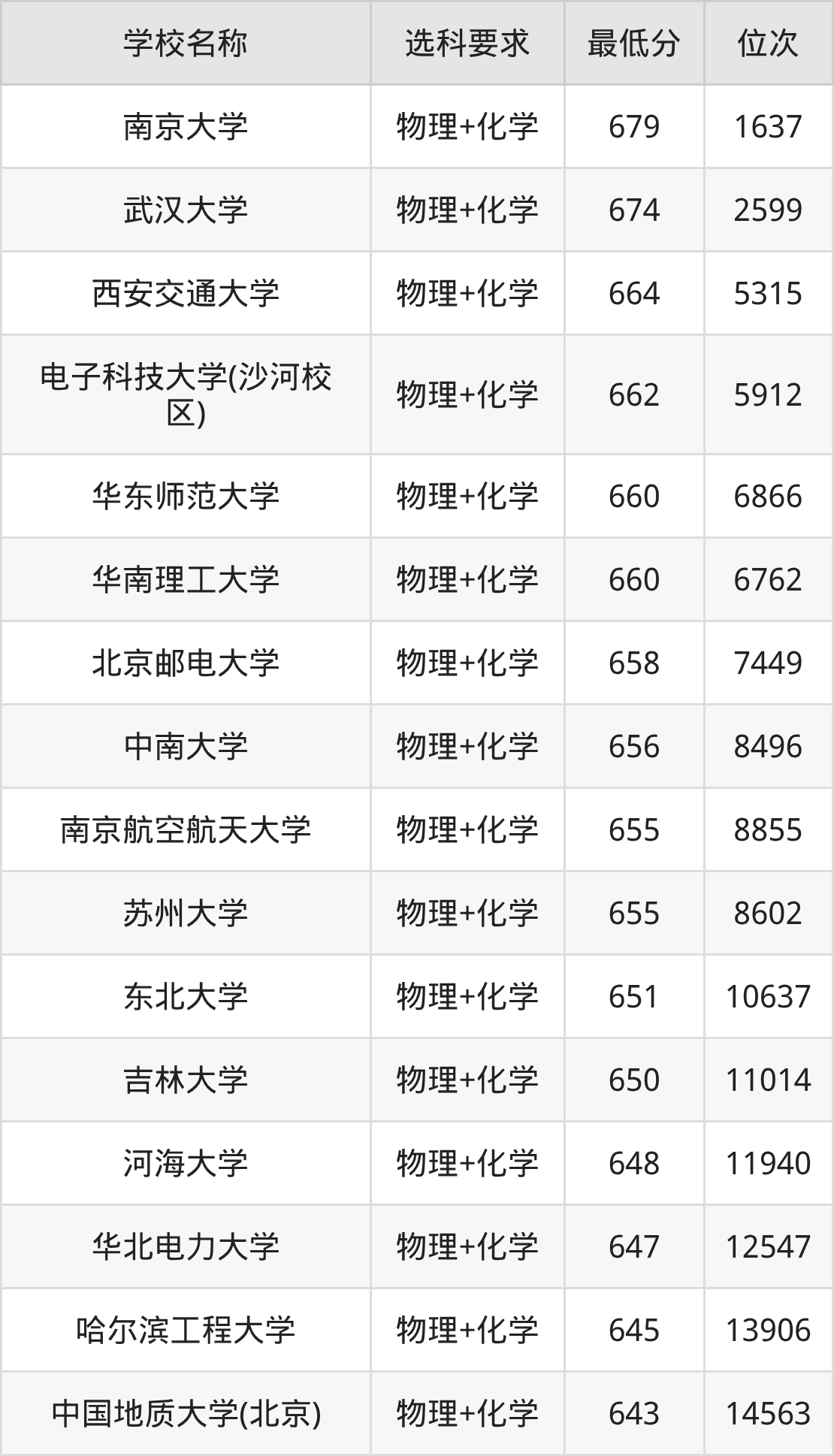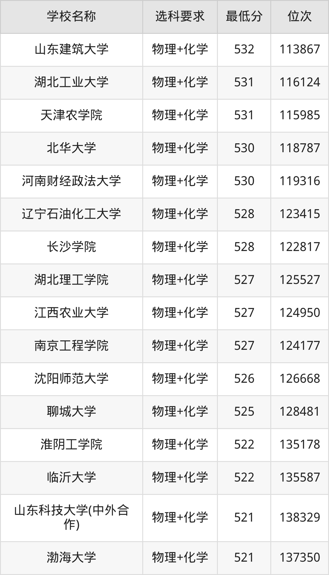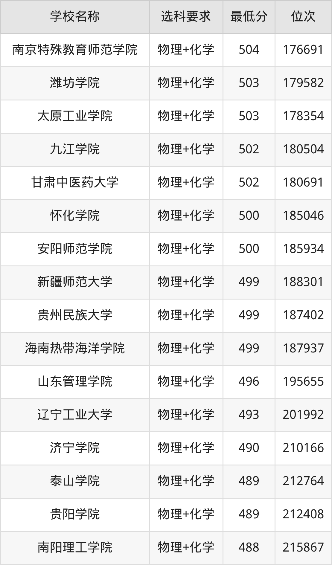 在山东招生的院校中,有236所要求考生必选“物理+化学”,如南京大学、武汉大学等;有1所要求考生必选“物理+化学+生物”,如云南大学。