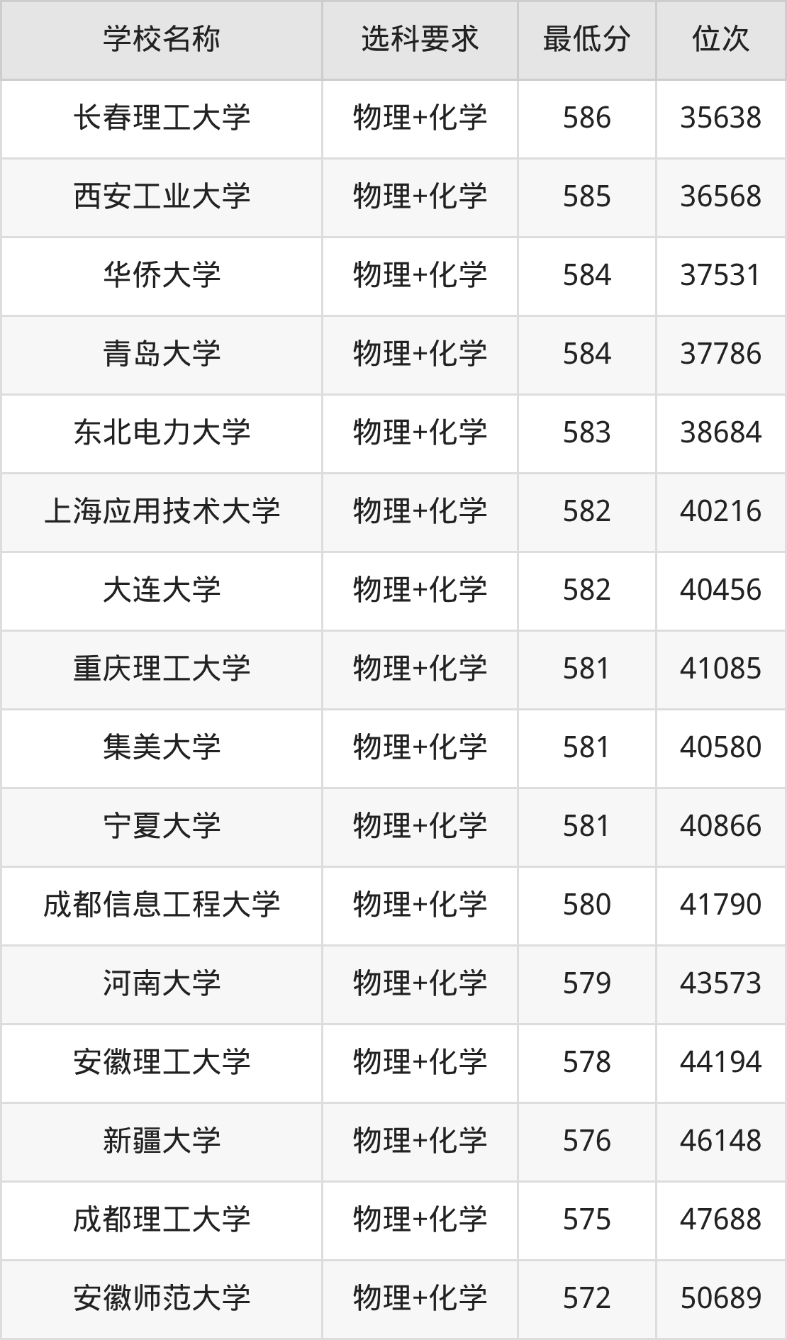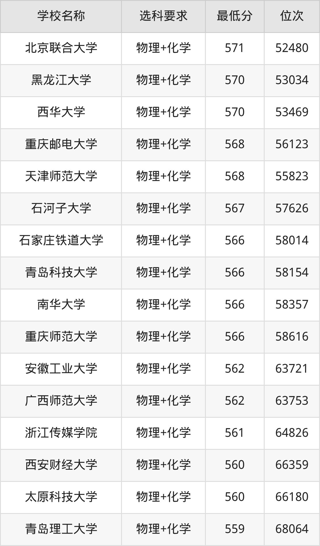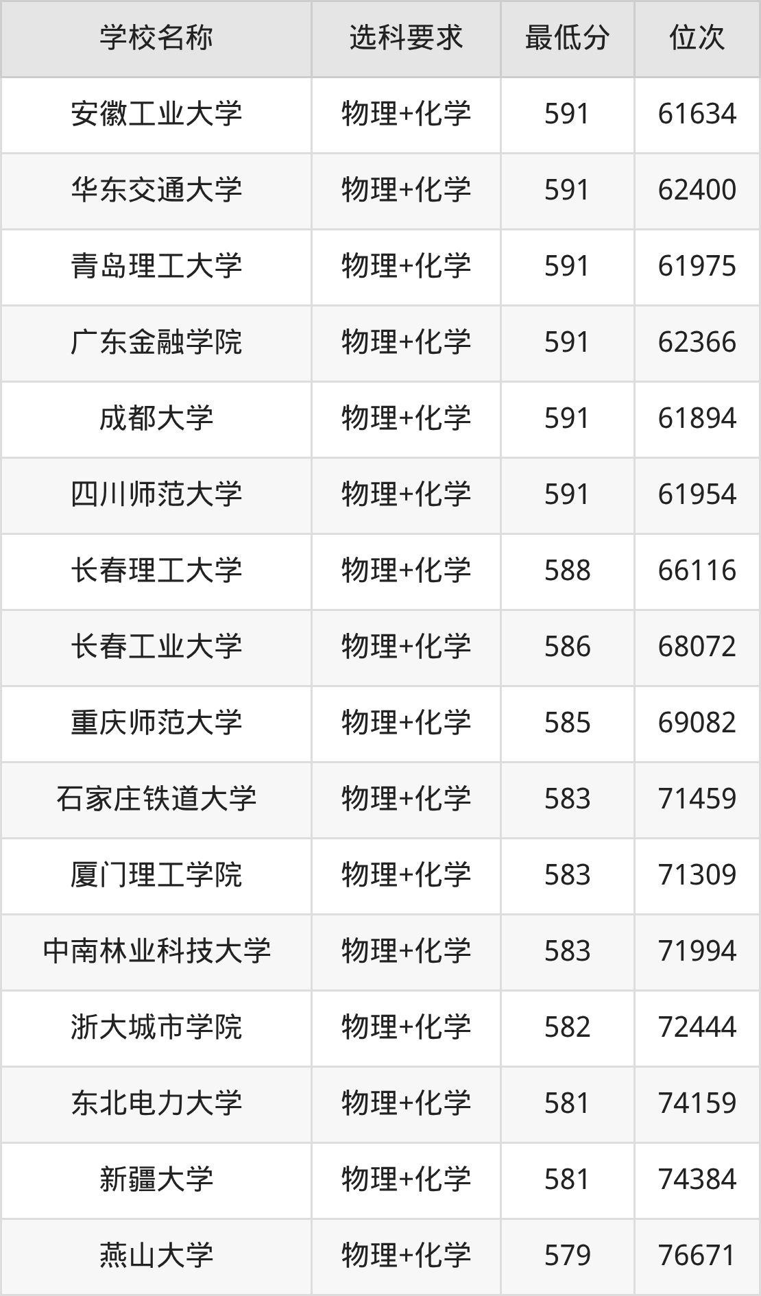 在山东招生的院校中,有236所要求考生必选“物理+化学”,如南京大学、武汉大学等;有1所要求考生必选“物理+化学+生物”,如云南大学。