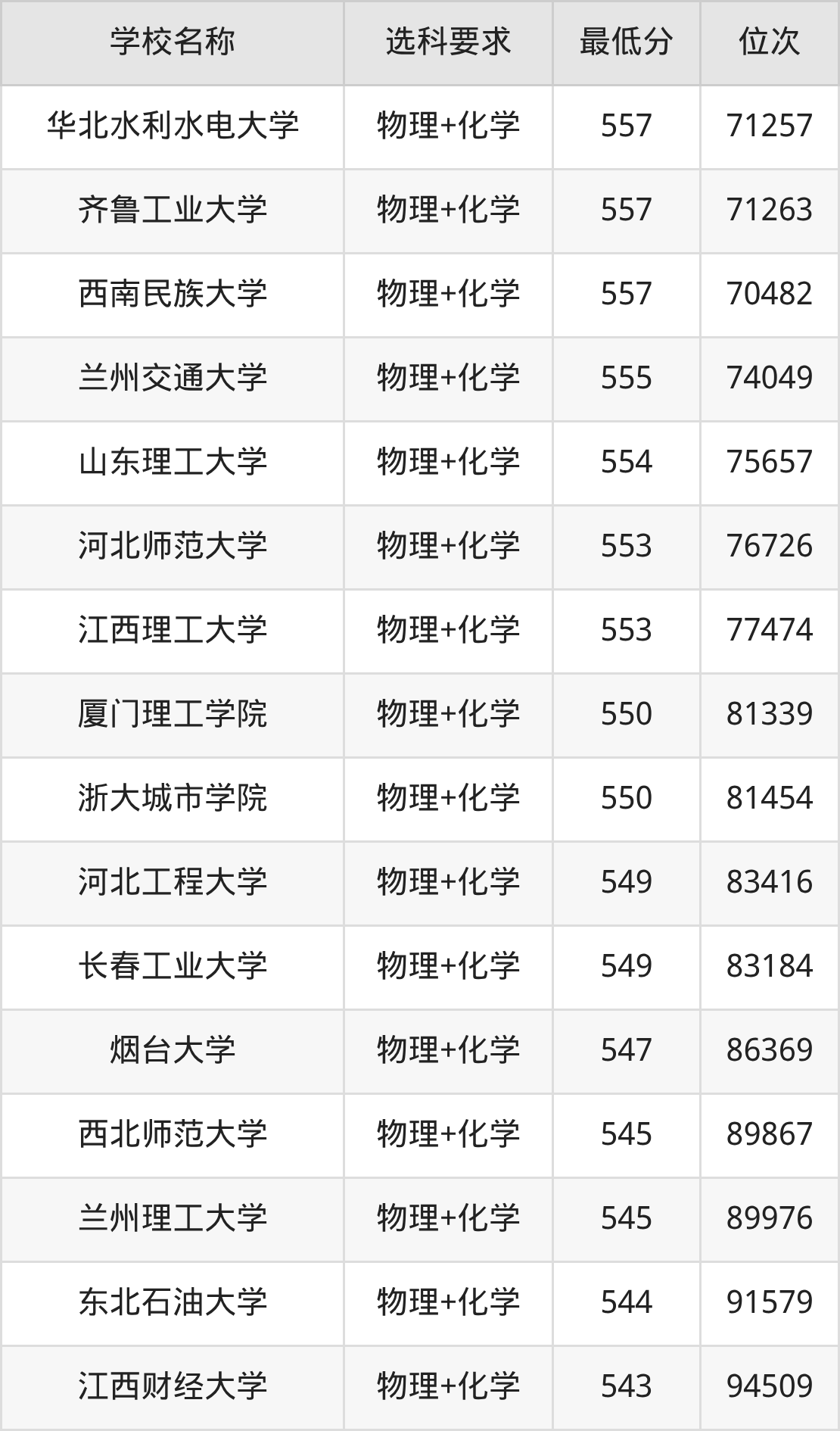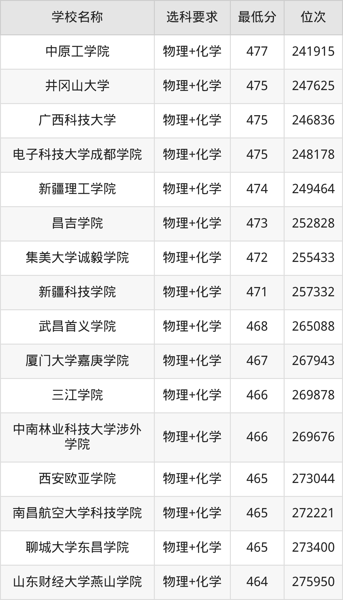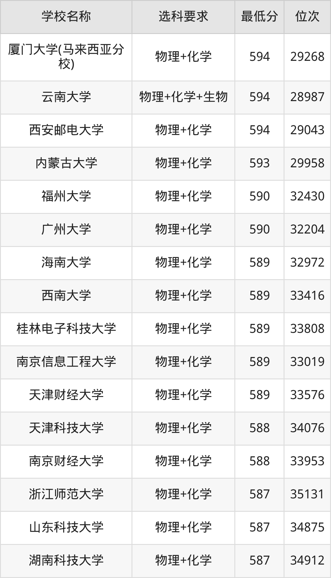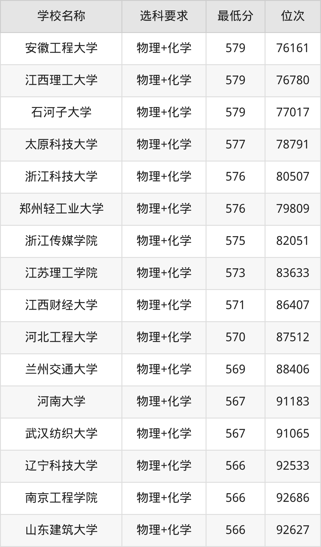 在山东招生的院校中,有236所要求考生必选“物理+化学”,如南京大学、武汉大学等;有1所要求考生必选“物理+化学+生物”,如云南大学。