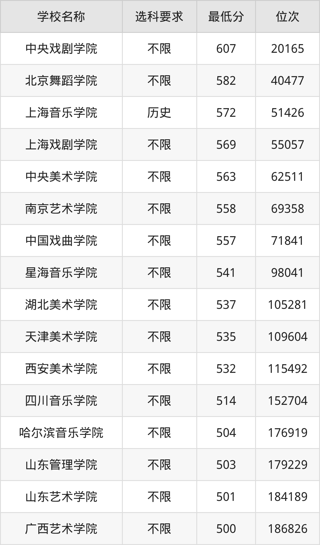 需要注意的是,艺术管理专业大学中有19所不限选科要求,如中央戏剧学院、北京舞蹈学院等;有1所要求考生必选“历史”,如上海音乐学院,因此大家在报考前要提前了解清楚专业选科要求。