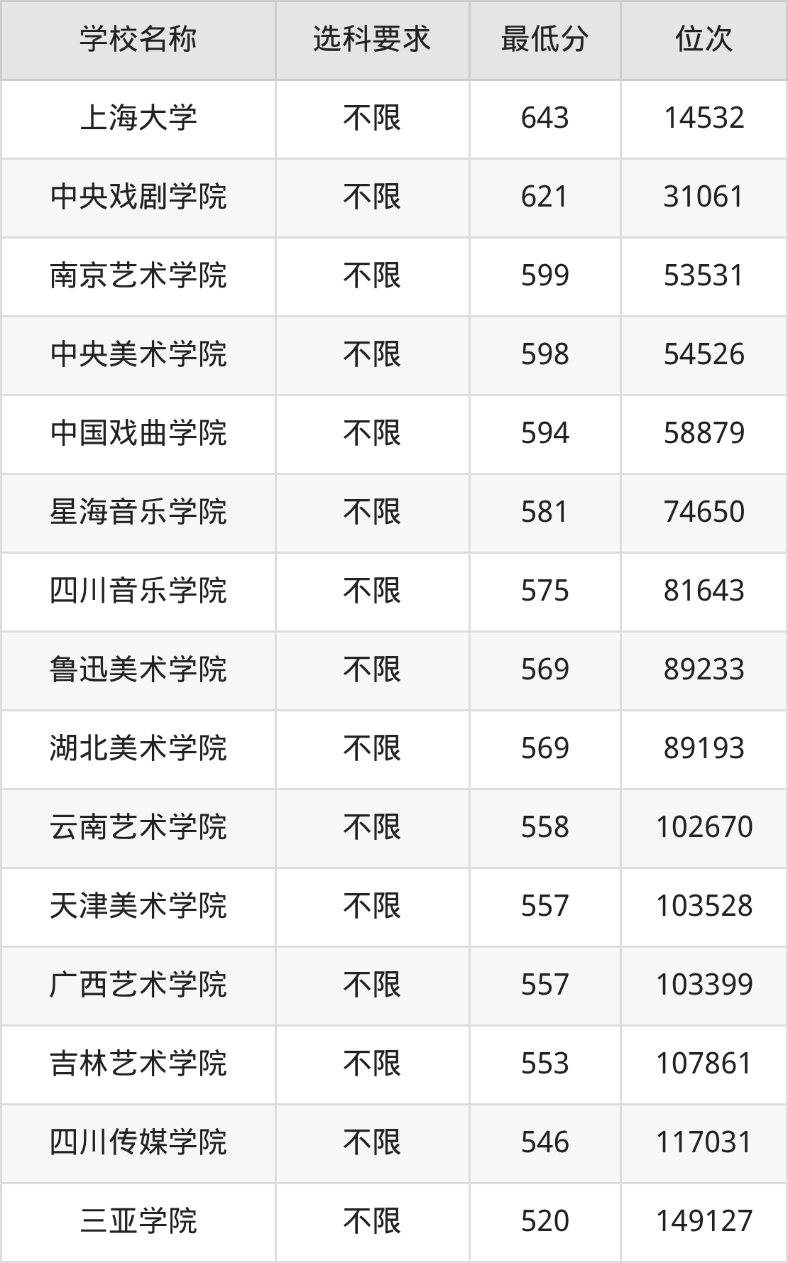 2025年艺术管理在浙江的招生院校有15所。数据显示,浙江考生想要就读艺术管理院校,至少要考到520分及以上,省排名位次需在149127名以内。