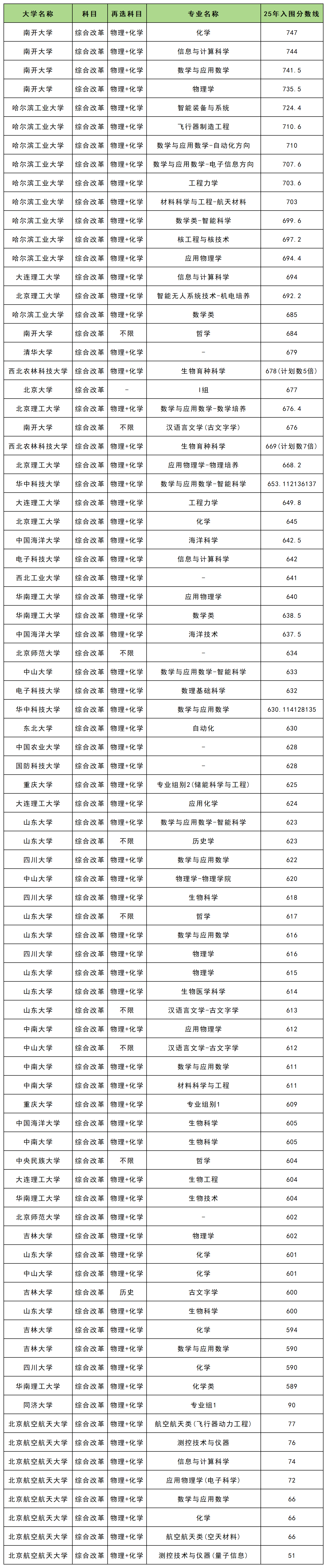 2025年山东强基计划最低入围分数线是51分,对应的是北京航空航天大学测控技术与仪器(量子信息)专业,选科要求是物理+化学。
