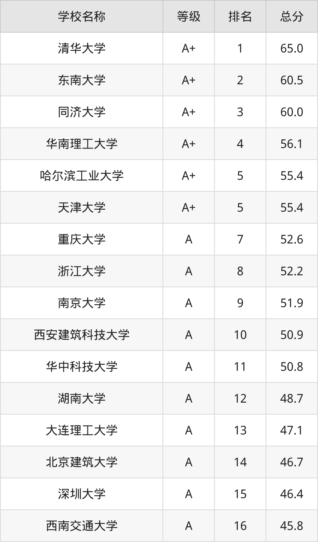 2024年建筑学大学全国排名: