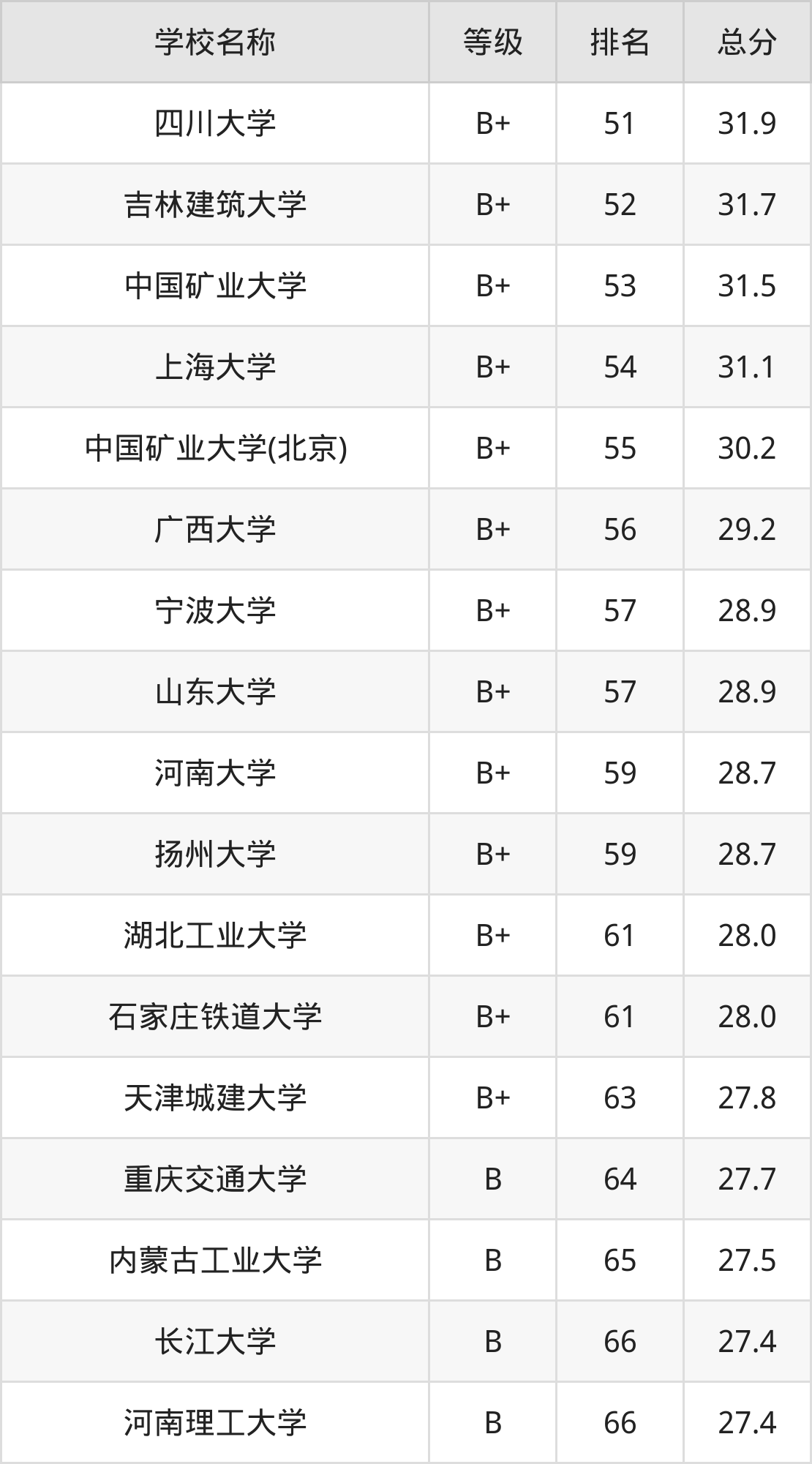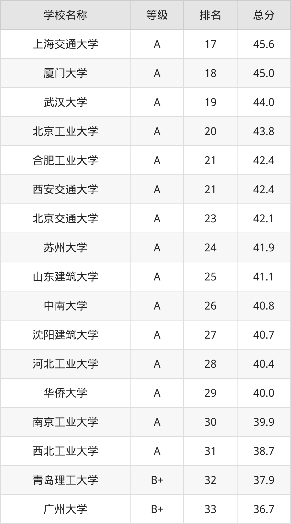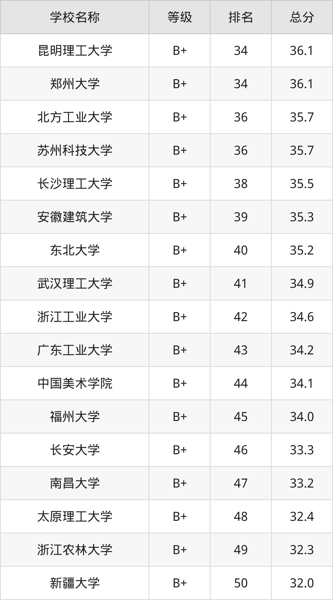 注:由于建筑学专业的开设院校数量庞大,本文整理出前100强的院校名单。