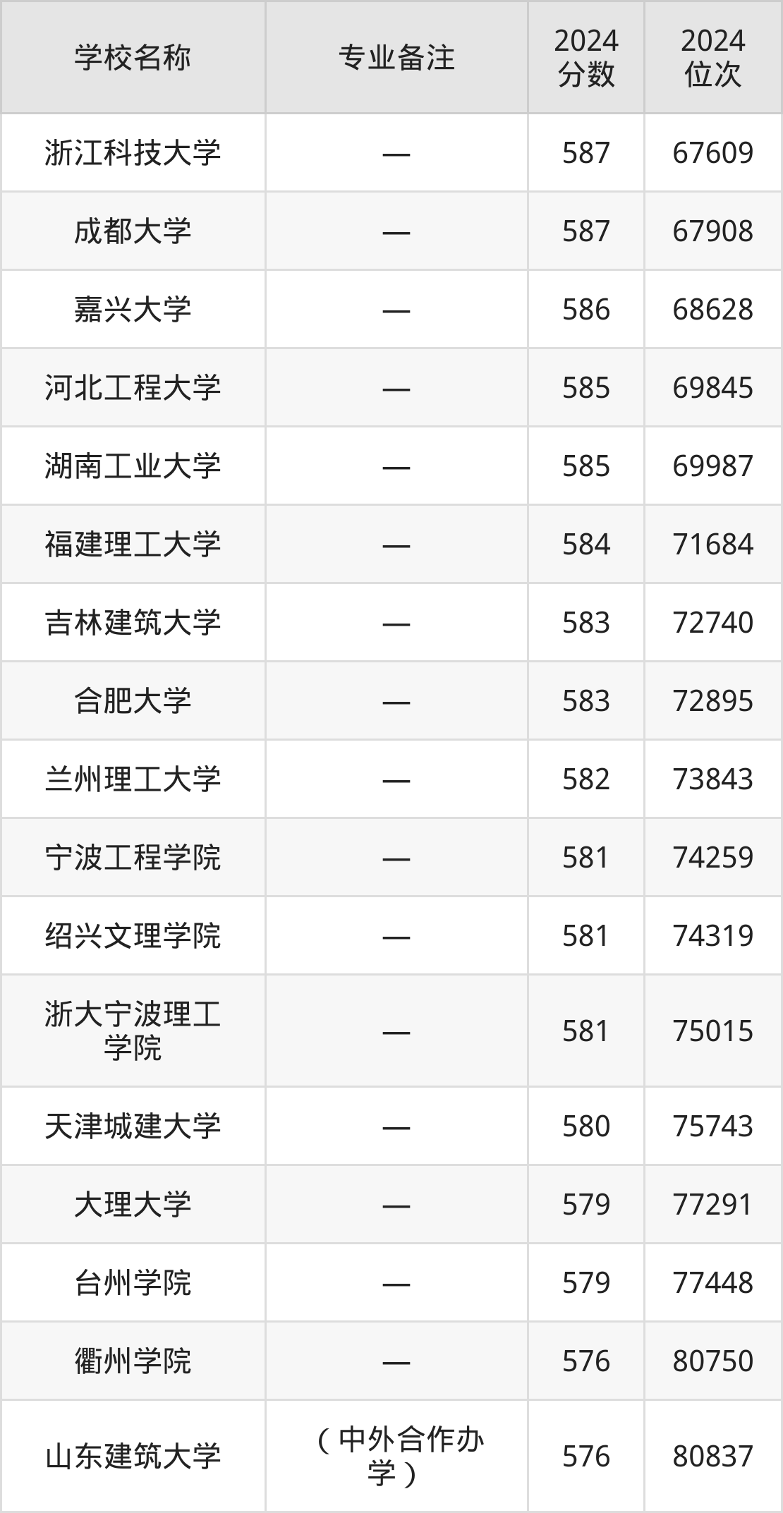 2024年全国各大学建筑学专业在浙江分数线: