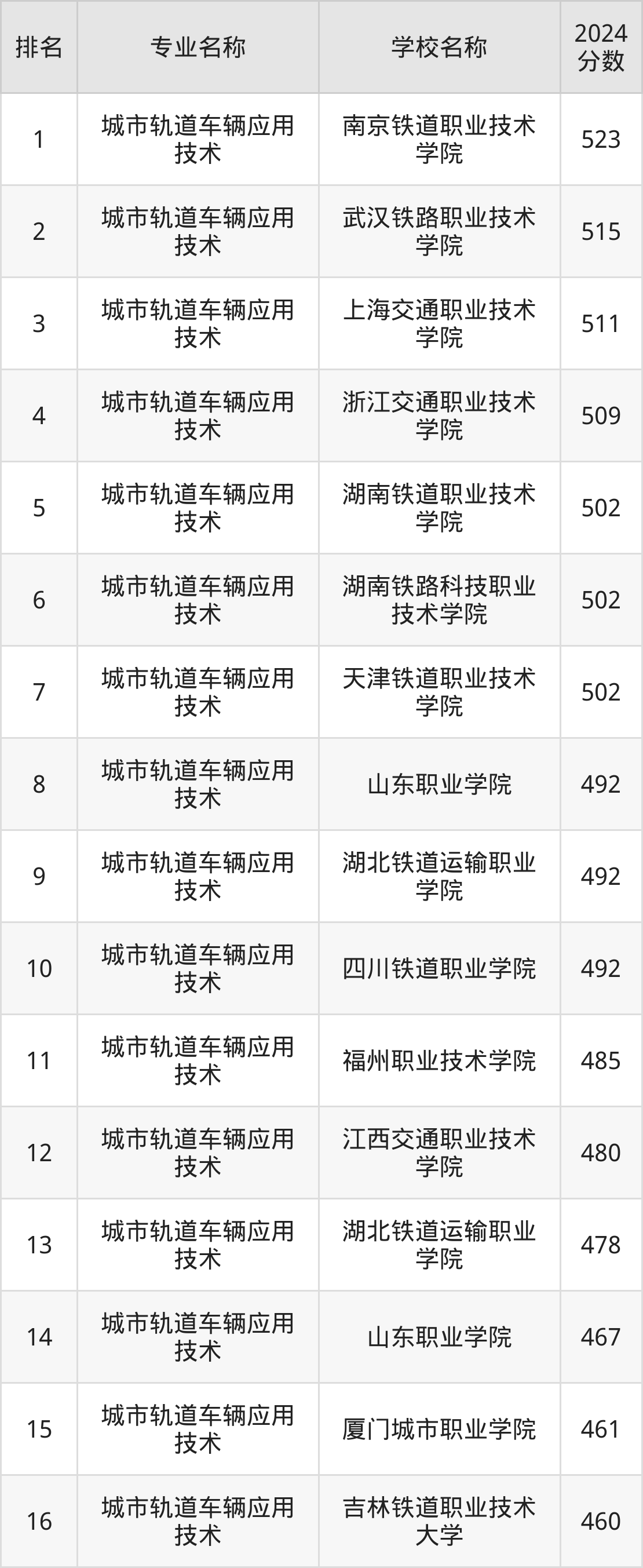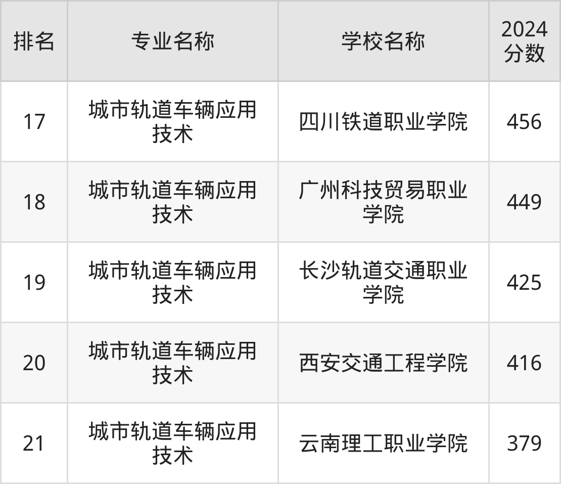 一、2024城市轨道车辆应用技术大学排名