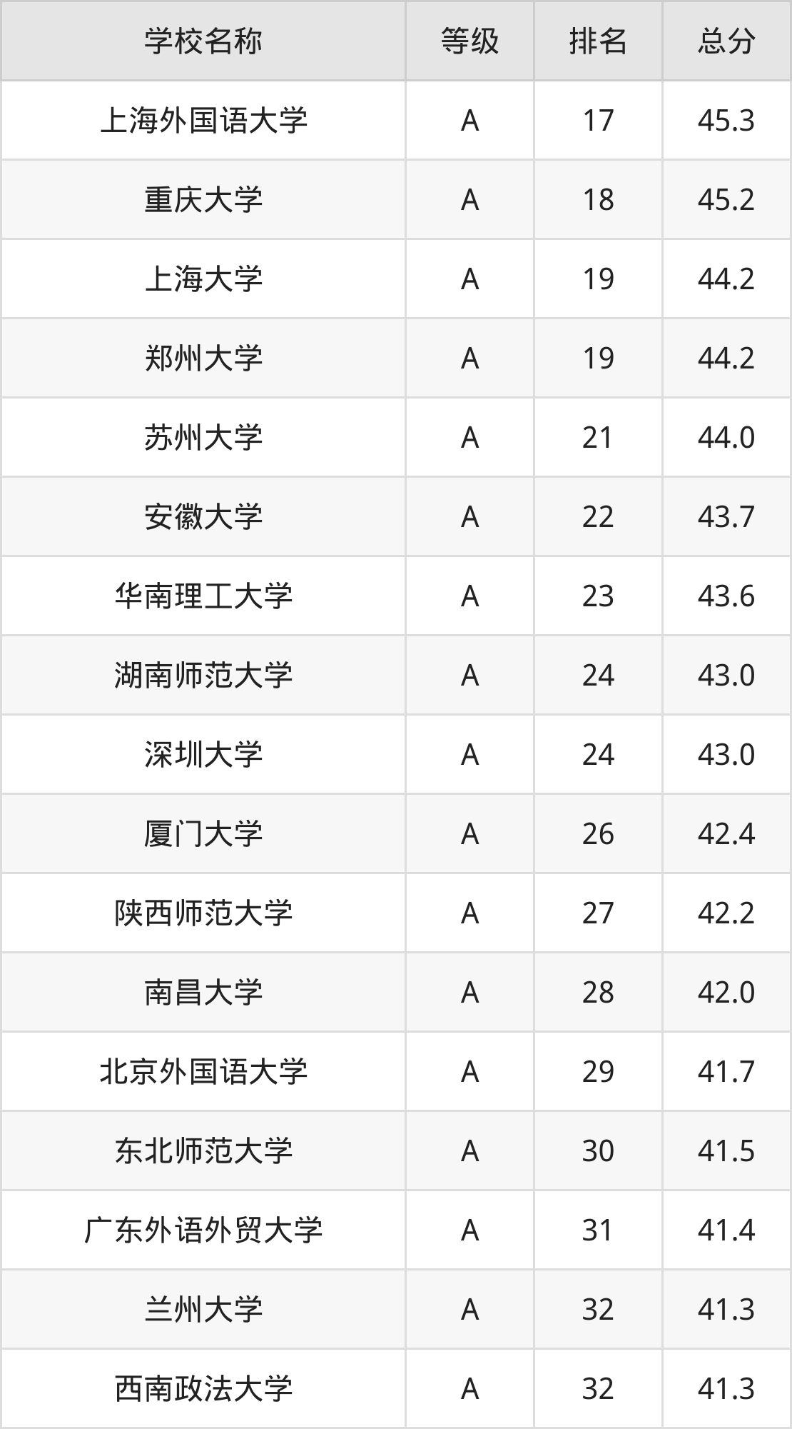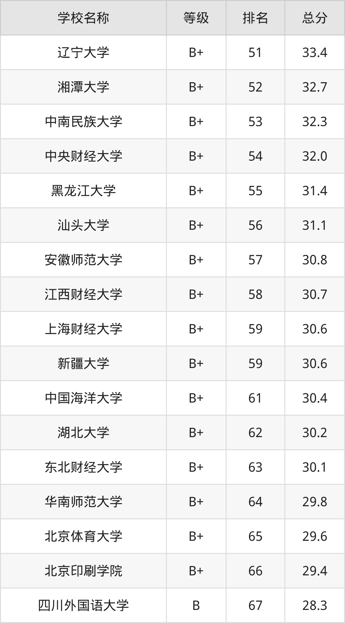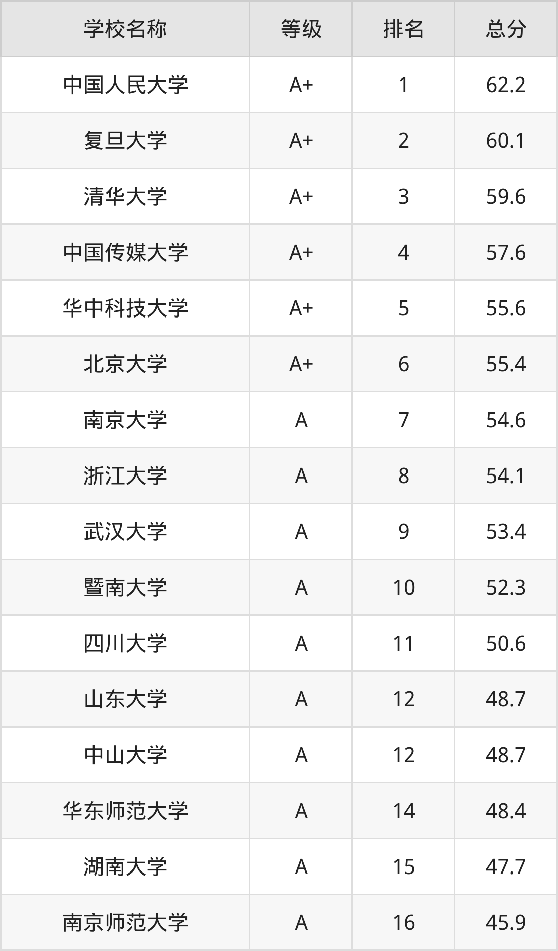 注:由于新闻学专业的开设院校数量庞大,本文整理出前100强的院校名单。