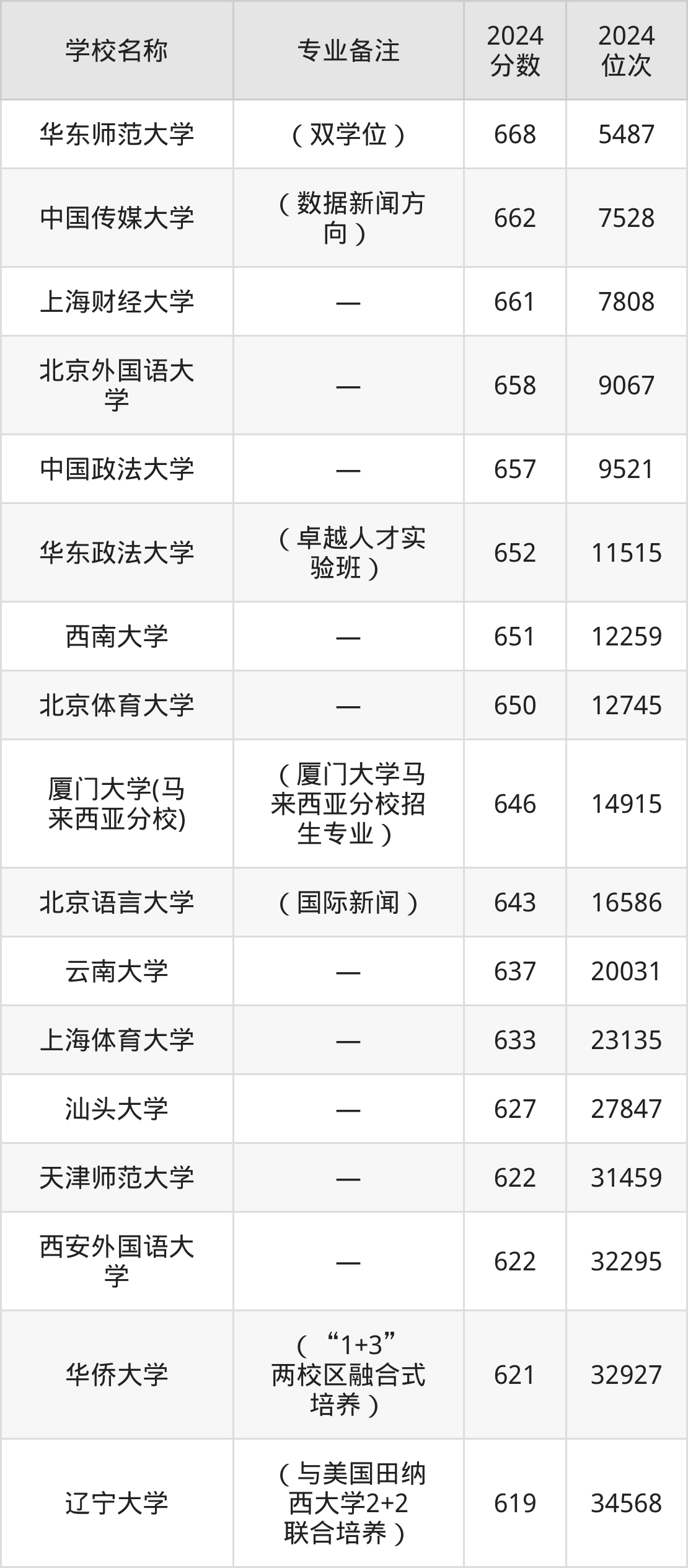 2024年新闻学大学全国排名: