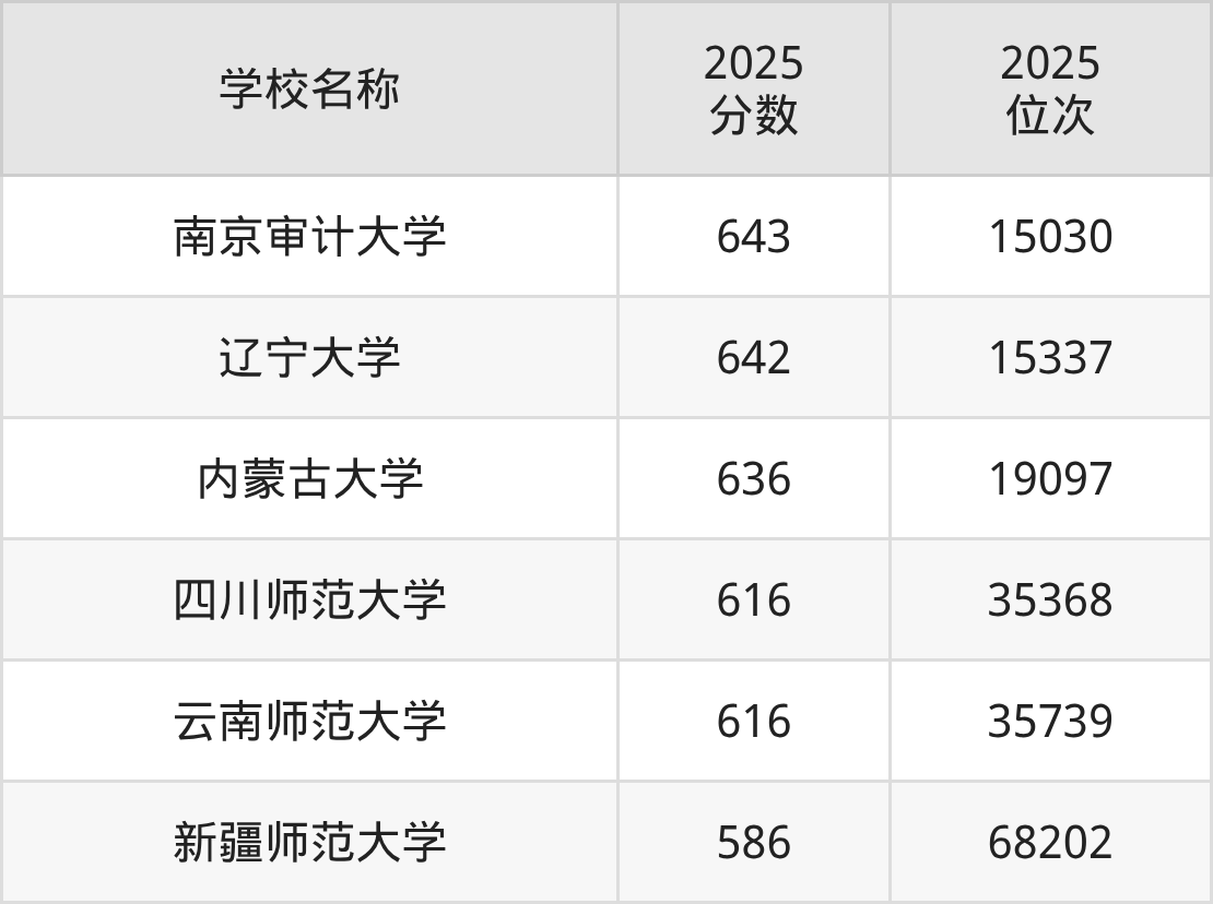 排在第二的纪检监察专业大学是辽宁大学,2025年投档线是642分,最低位次是15337位。