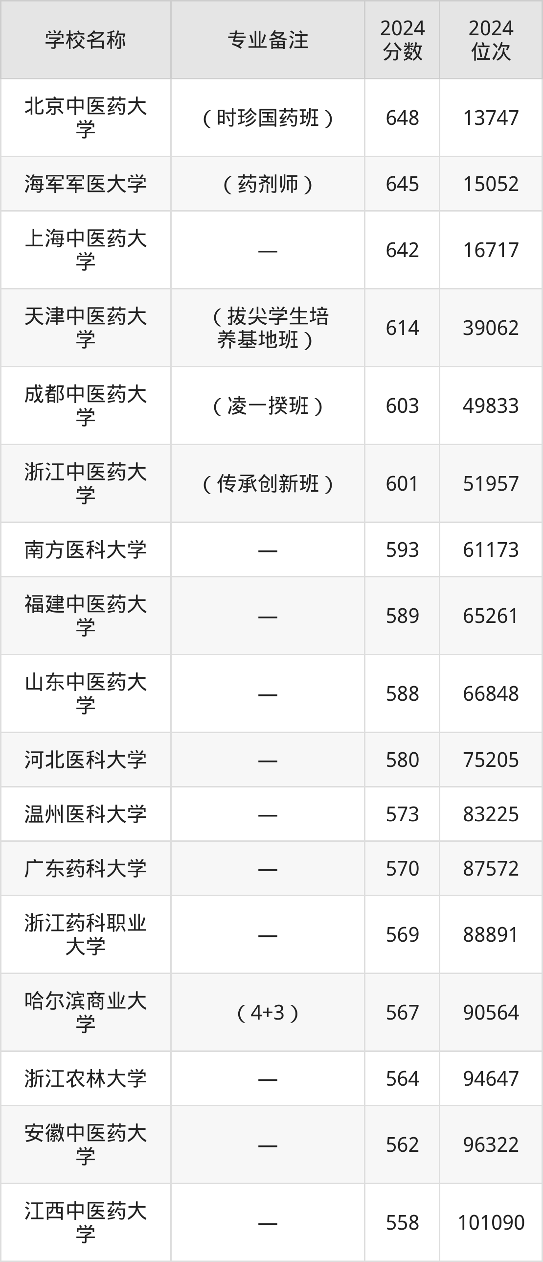 因为各院校及专业的分数线在不同地区的录取情况都不一致,本文就参考2024年浙江各院校专业的投档分数线,为大家整理出全国大学中药学专业在浙江的投档录取情况,供参考。