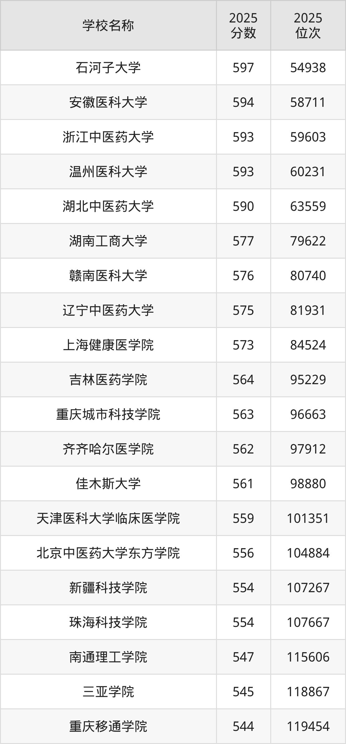 在浙江,分数线第一的健康服务与管理专业大学是石河子大学,2025年投档线是597分,最低位次是54938位;