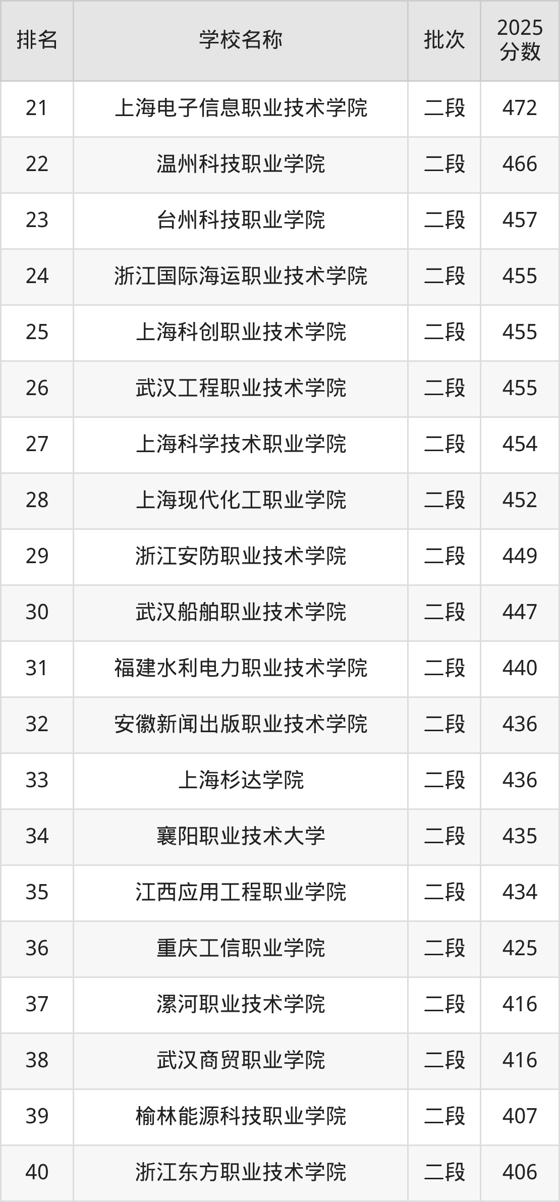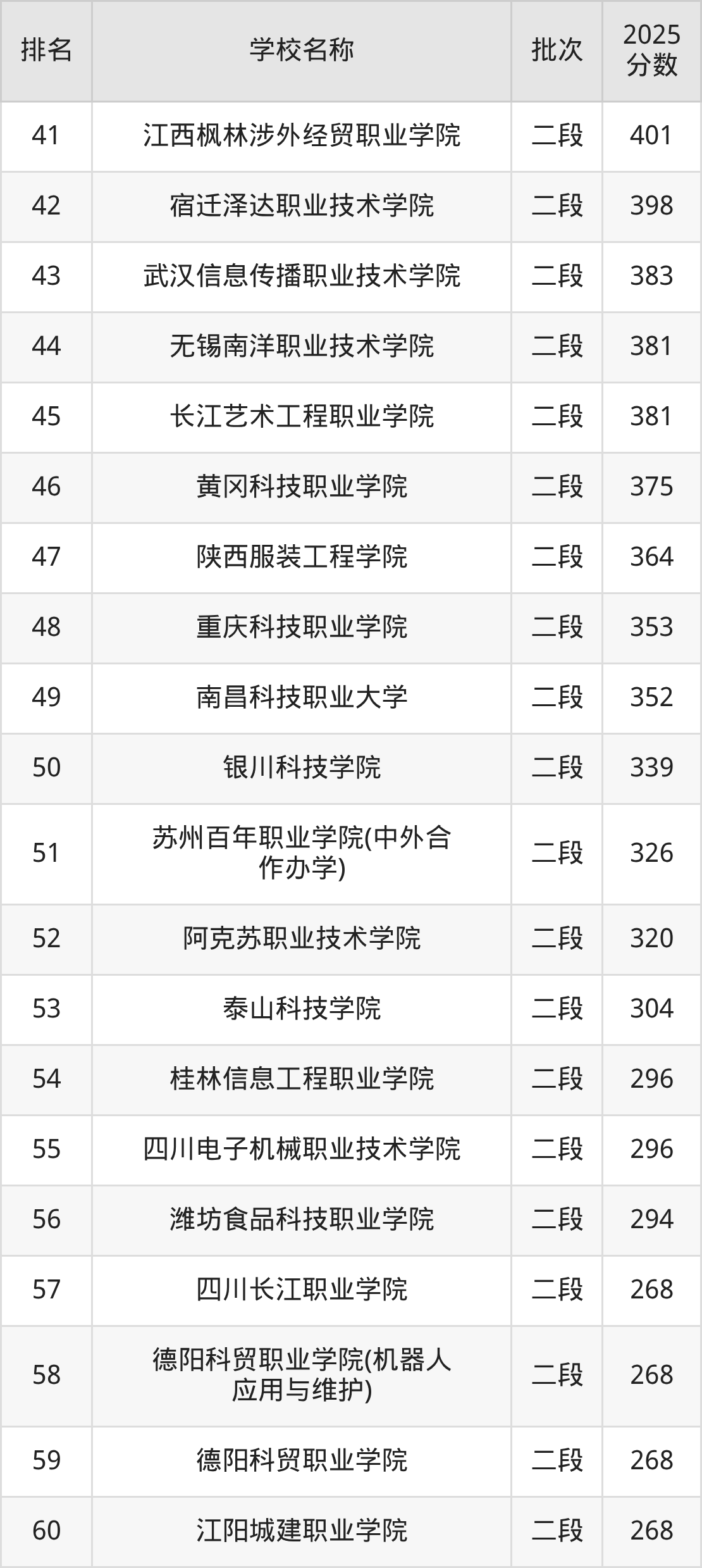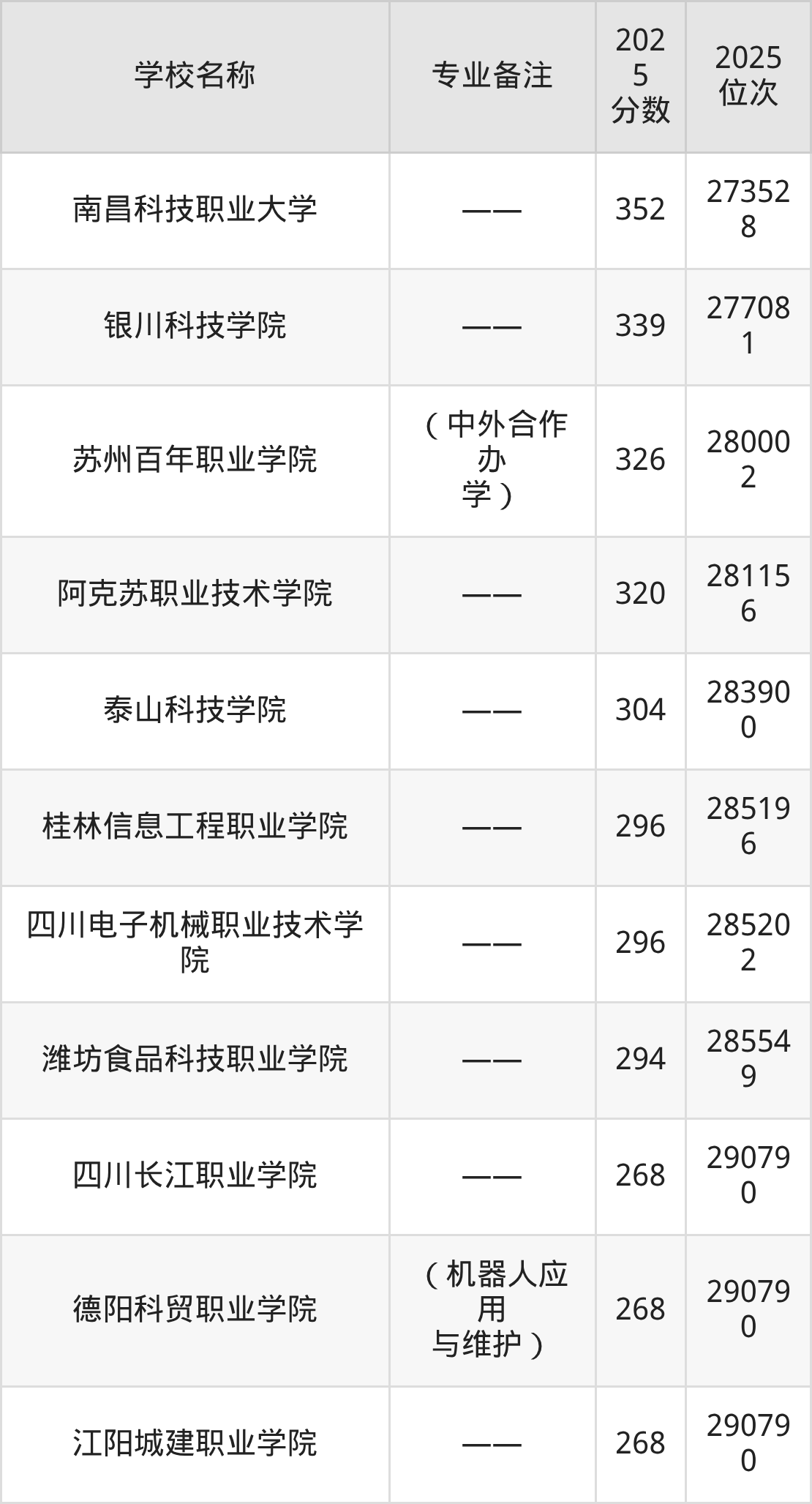排在第二的智能控制技术专业大学是江苏航空职业技术学院,2025年投档线是521分,最低位次是147596位。