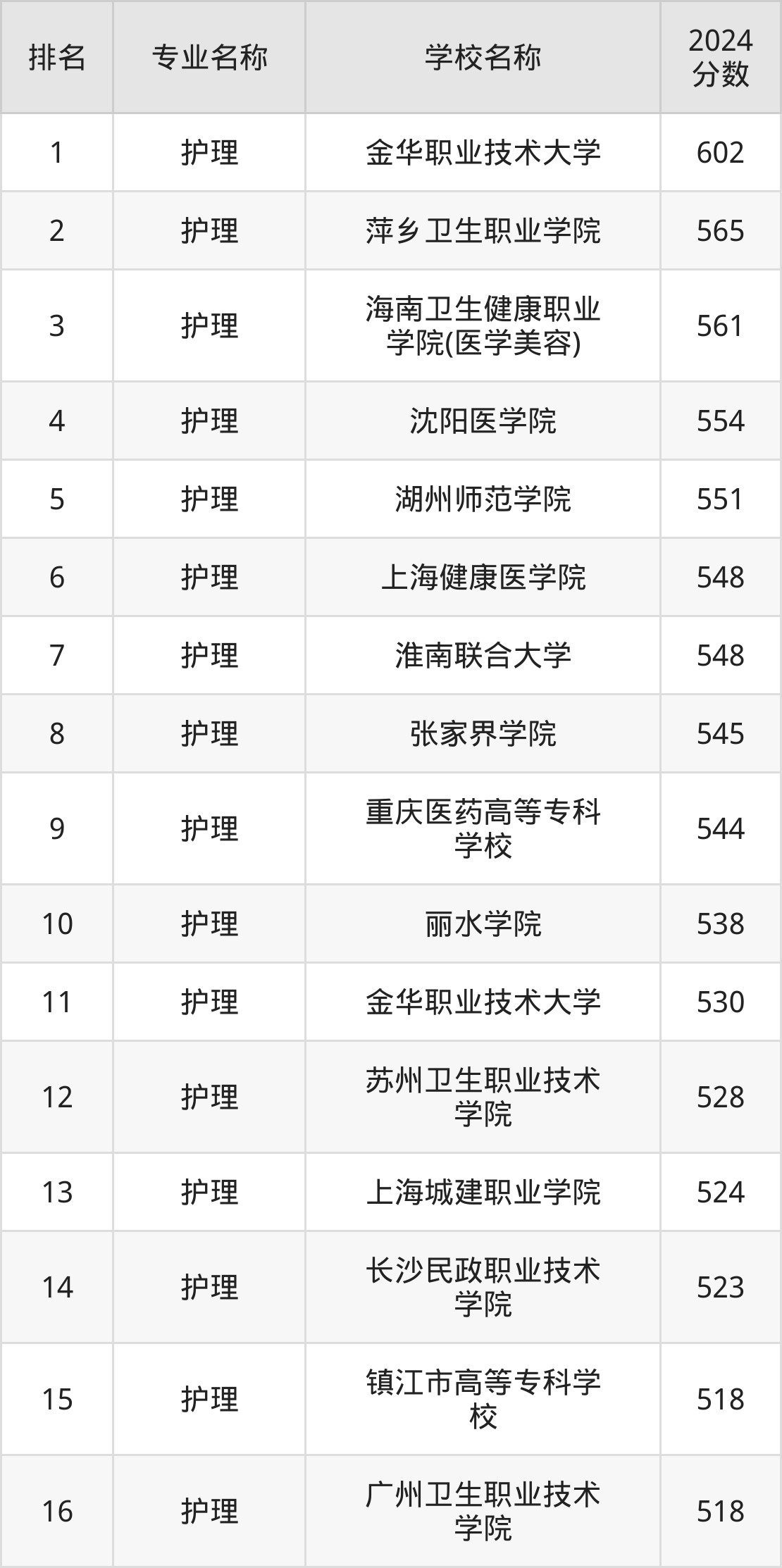 参考2024年山东各专业分数线,各大学护理专业的分数线为:金华职业技术大学602分、萍乡卫生职业学院565分等,更多数据详见下文。