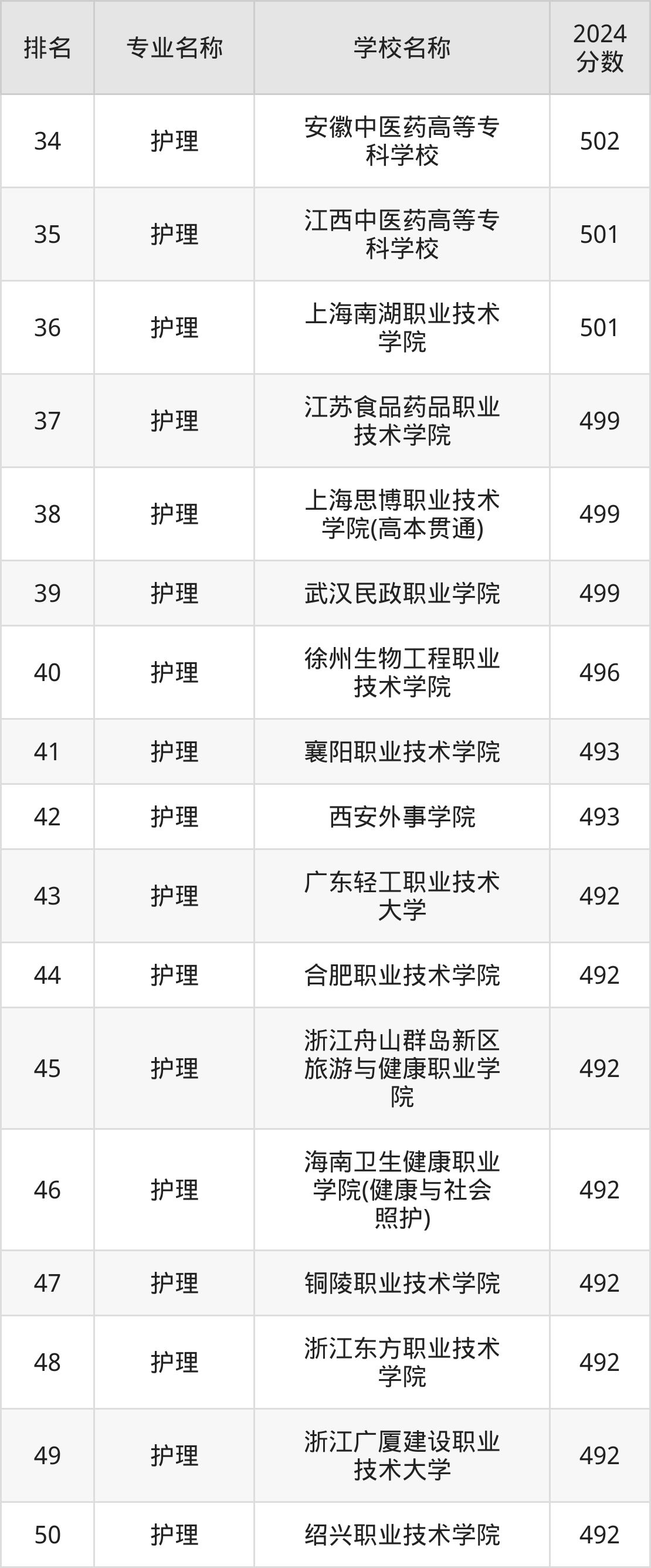 二、2024护理专业分数线