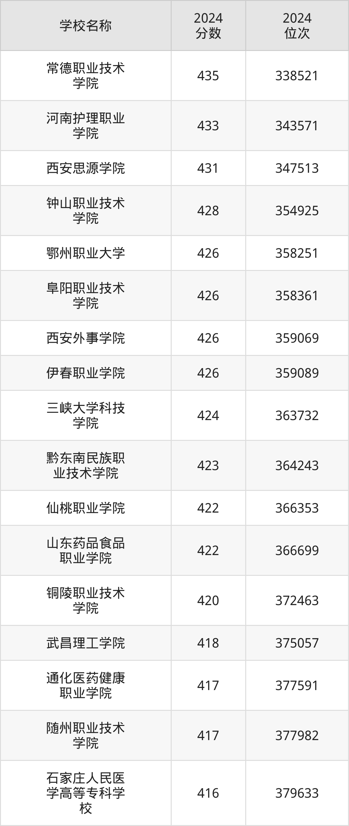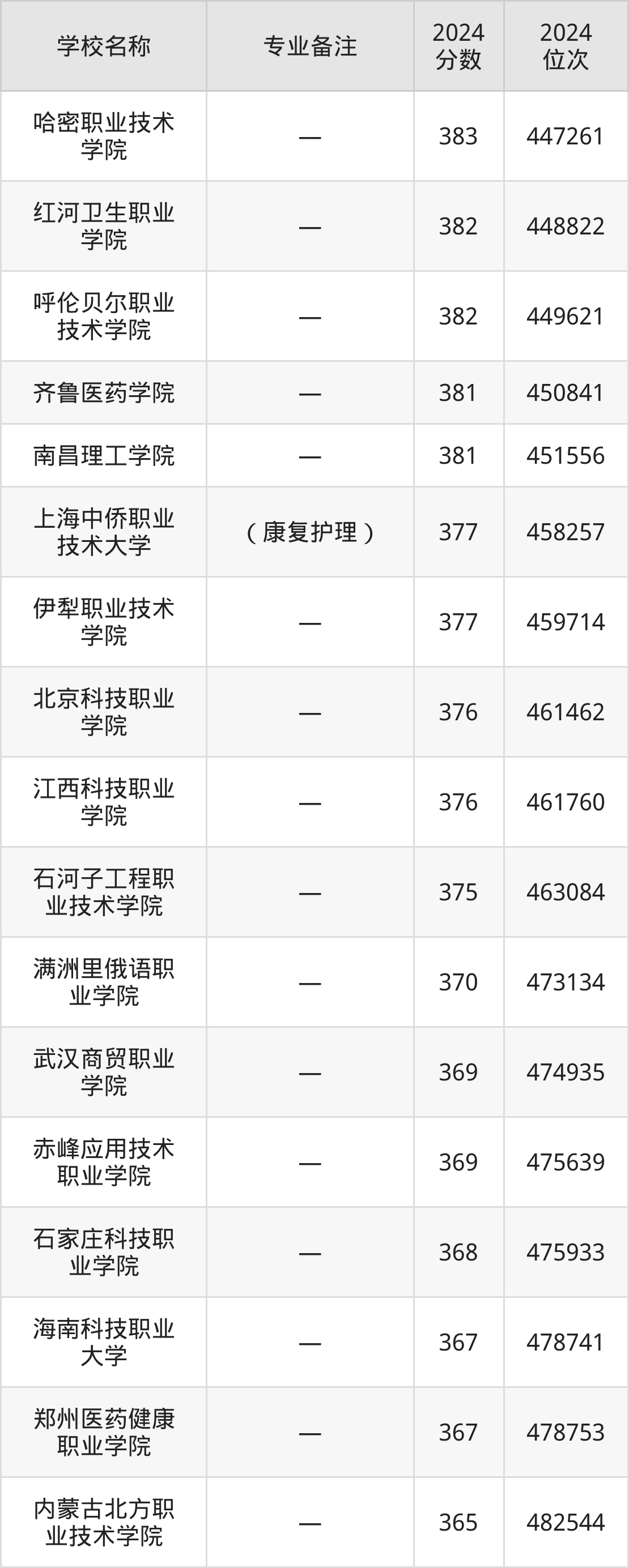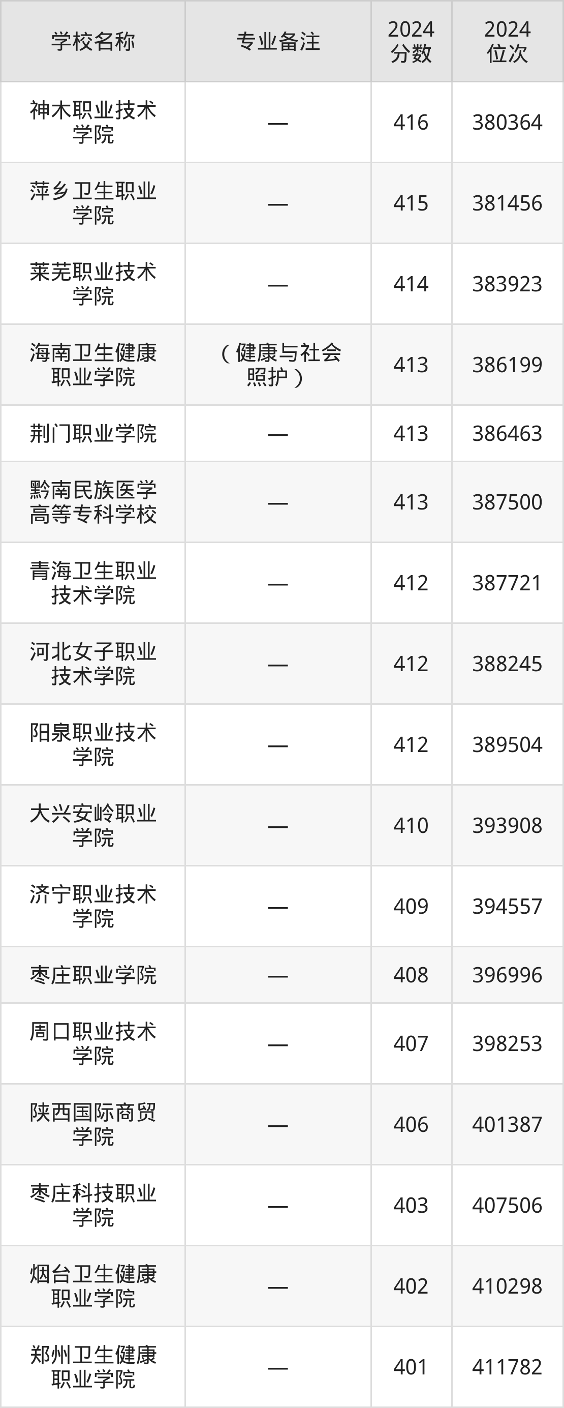 排在第二的护理专业大学是菏泽医学专科学校(高职3+2贯通培养),2024年投档线是497分,最低位次是187045位。