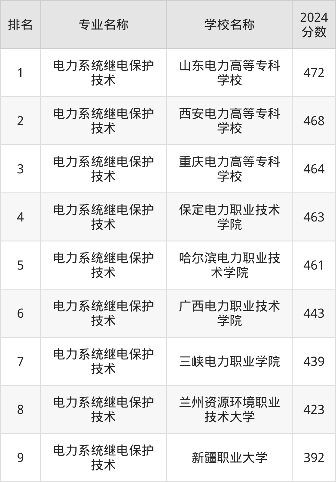 第3名:重庆电力高等专科学校464分